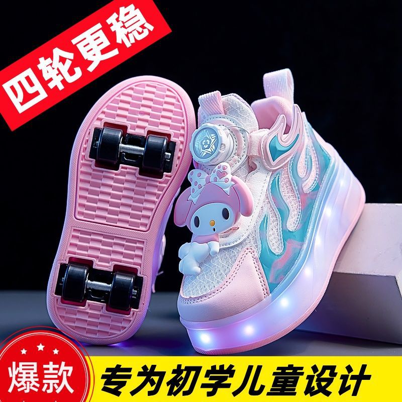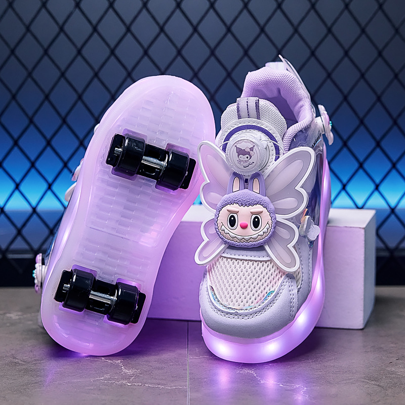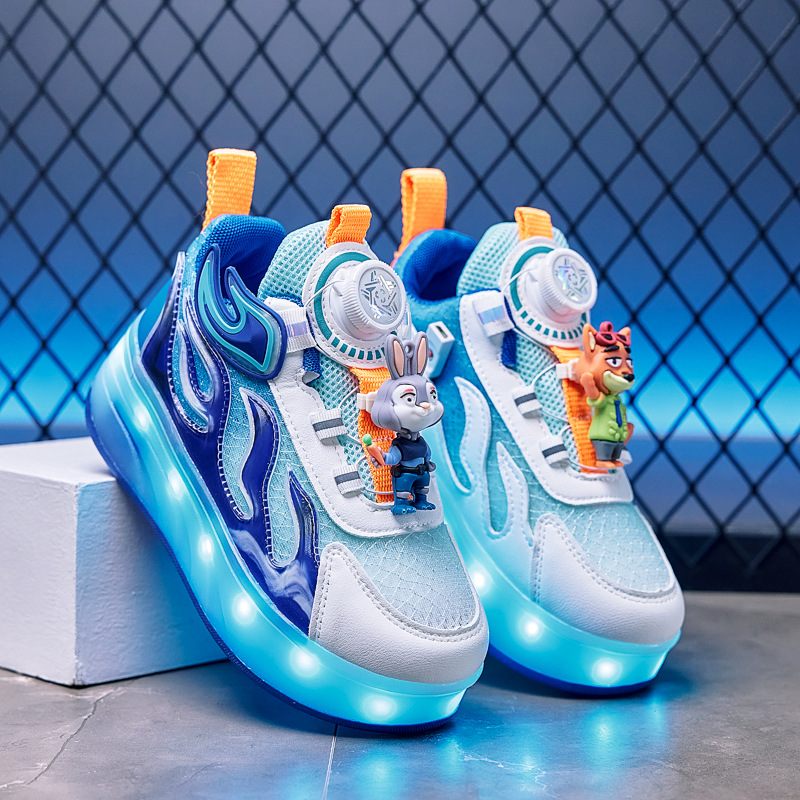 四輪新作シューズ2025年新作二用途スケートシューズ漫画柄子供用越境卸売四輪ライトアップシューズ暴走シューズ