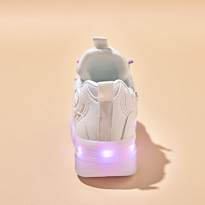 女の子用新作シューズ、光るスポーツシューズ、軽量ランニングシューズ、女の子用ライトアップ回転ボタン付きウィング、春夏メッシュ通気性