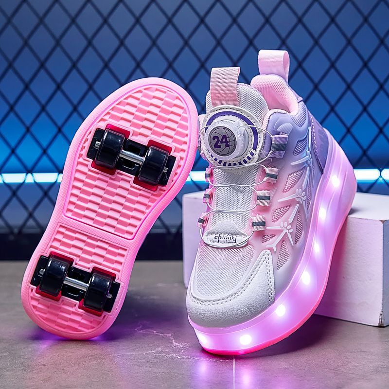 女の子用新作シューズ 2025年新作 バーストシューズ 子供用光る二輪スポーツシューズ スケートシューズ 収縮式スケート