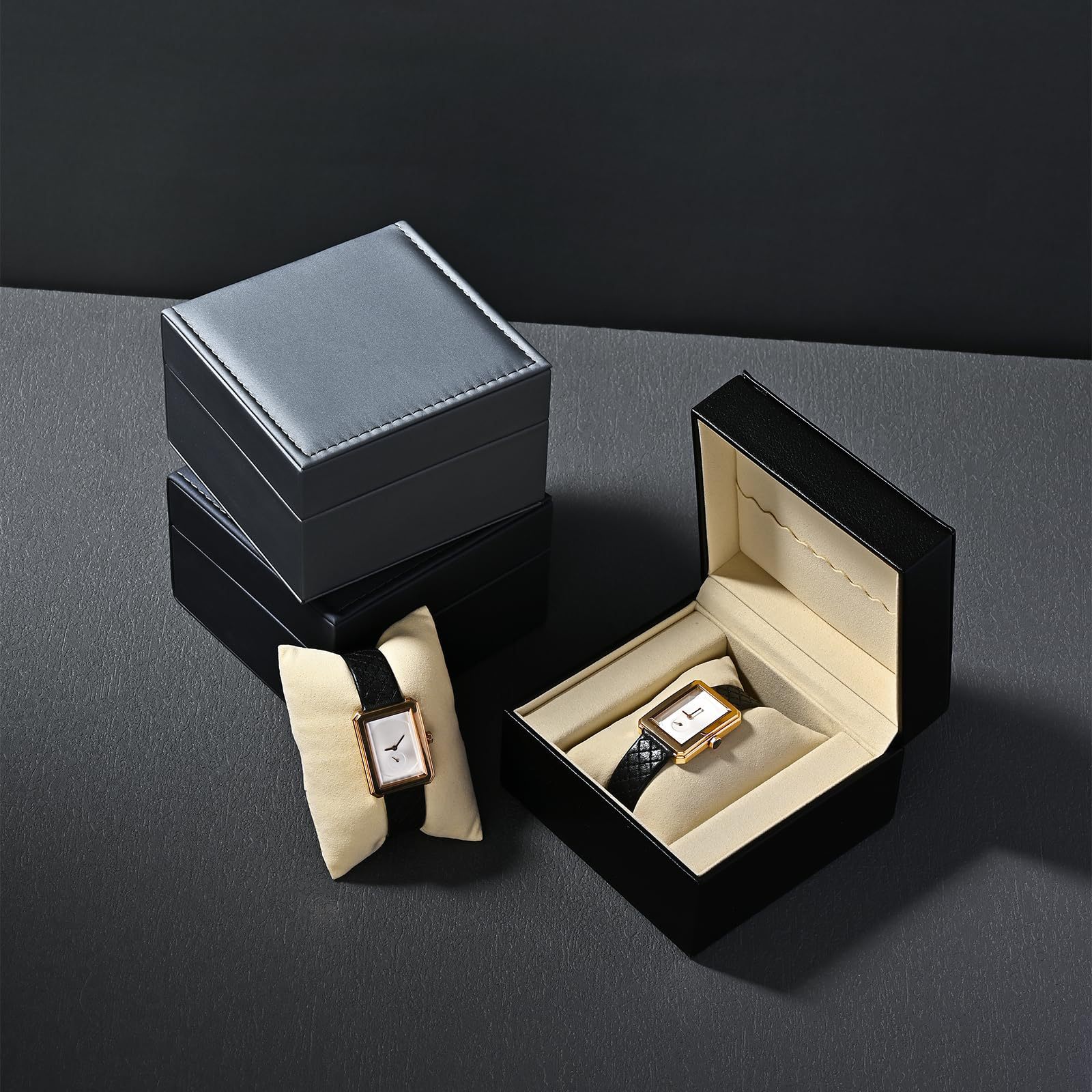 Amazon レザースクエアウォッチ収納ボックスディスプレイボックスシンプルな PU ソリッドカラーメンズウォッチボックスギフトボックス