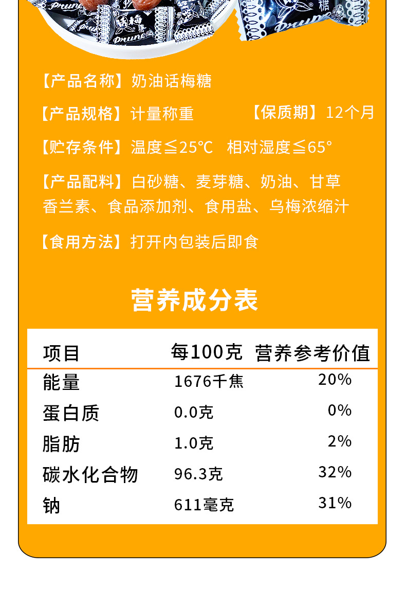 冠生園大白兎クリーム話梅糖500g/袋枕式硬糖間食キャンディー結婚祝い喜糖卸売り