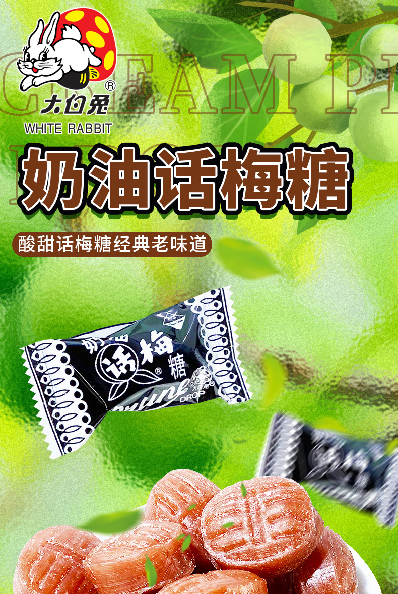上海冠生園大白兎クリーム話梅糖500gばら積キャンディー結婚喜糖レトロ小間食卸売り