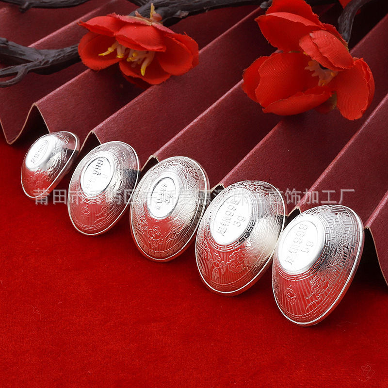 純銀999銀元宝ギフト工芸品コレクション招財銀塊鉄工芸品バラ売り中空福字純銀置物