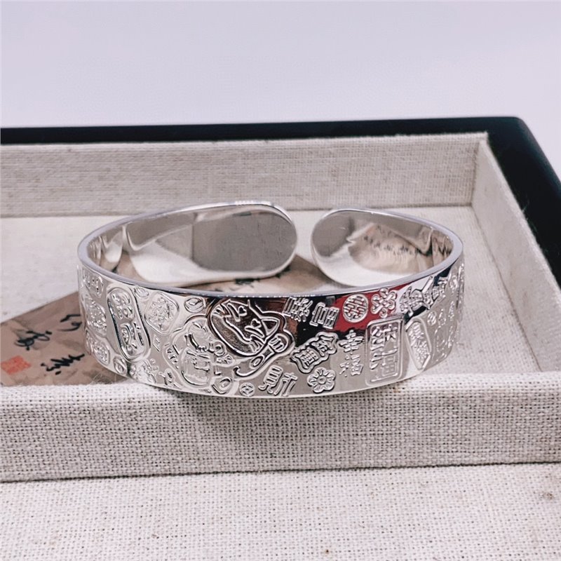 正品銀装飾足銀999.9吉言招財猫開口ブレスレットファッションブレスレット純銀男女代理