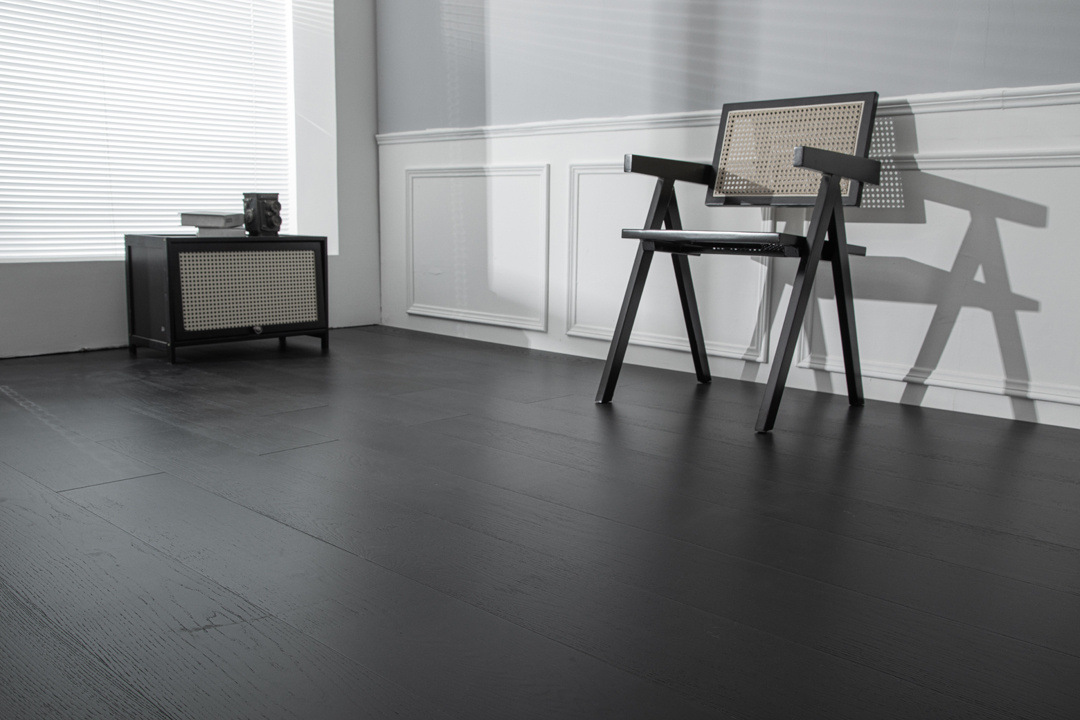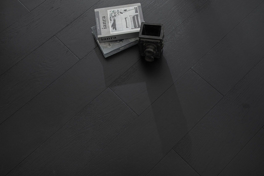 純三層無垢材フローリング環境に優しいヨーロピアンホワイトオークウッドカラーピュアブラック15/3mm厚さ1.9m大型ボードヴィラ