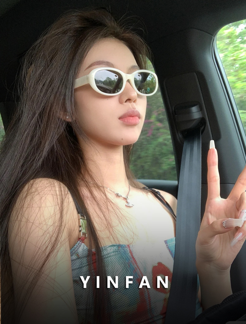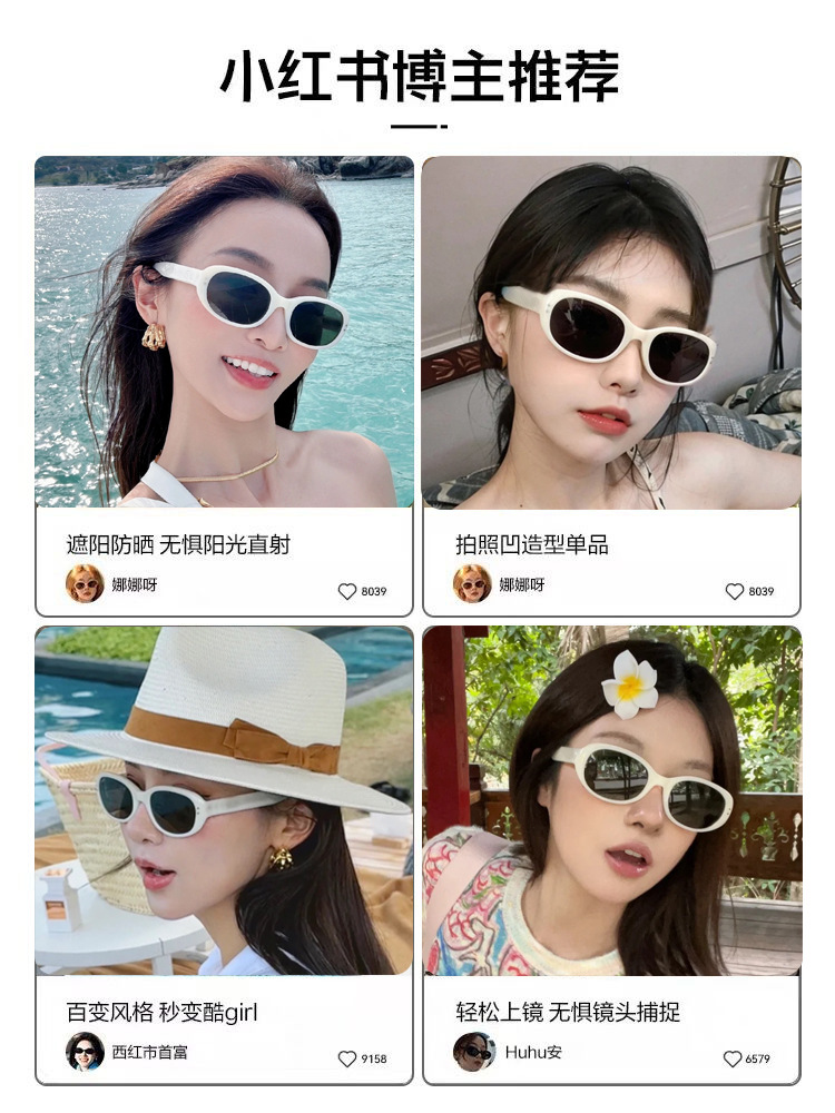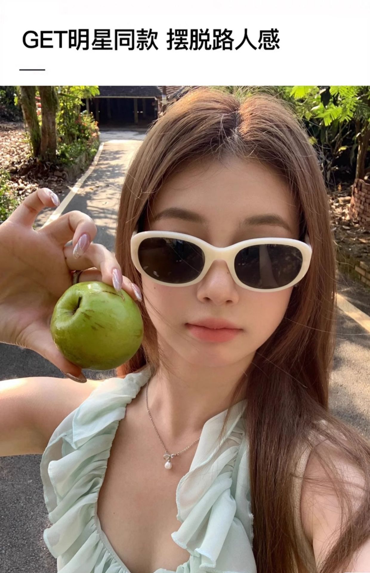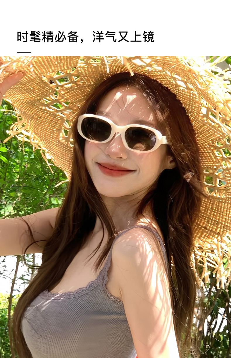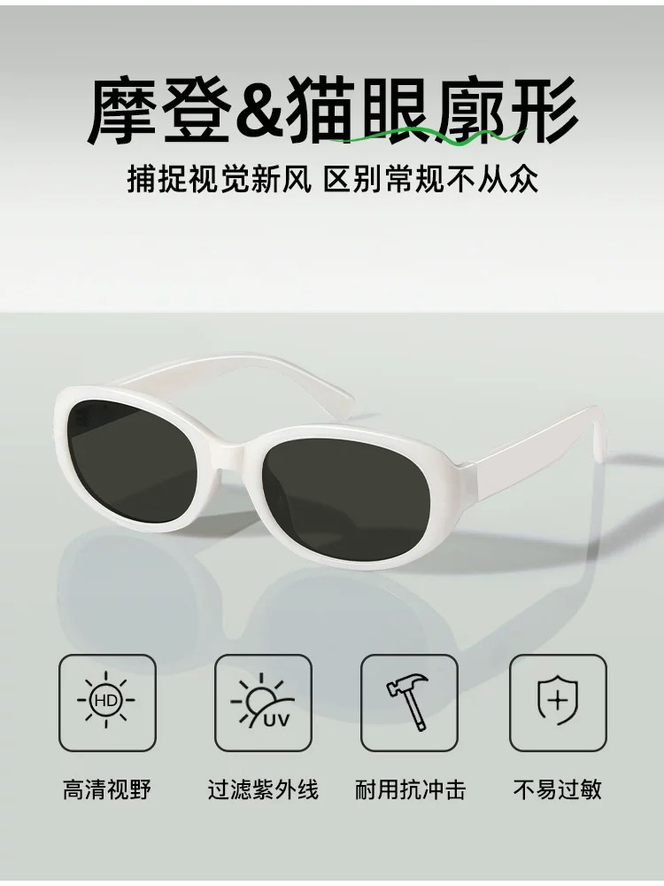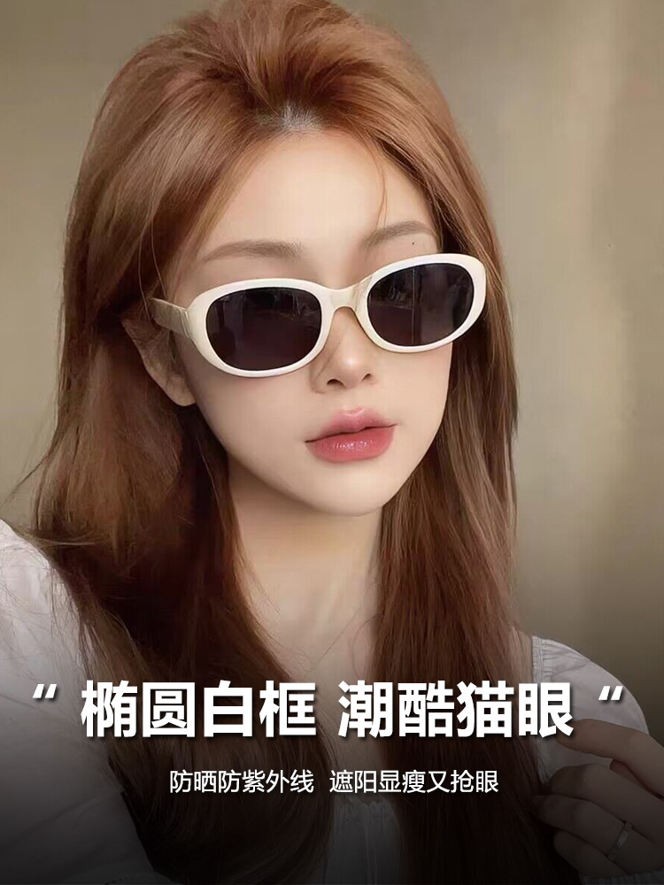 时尚度假风椭圆猫眼拍照出片墨镜海边椰椰甜酷辣妹风太阳镜防晒