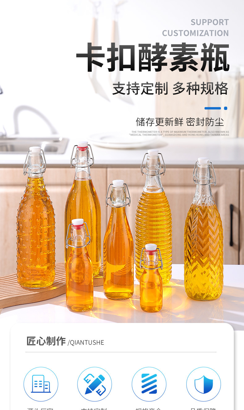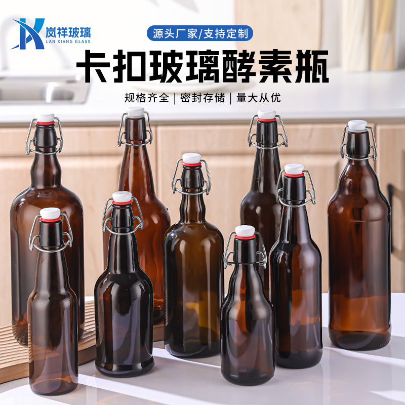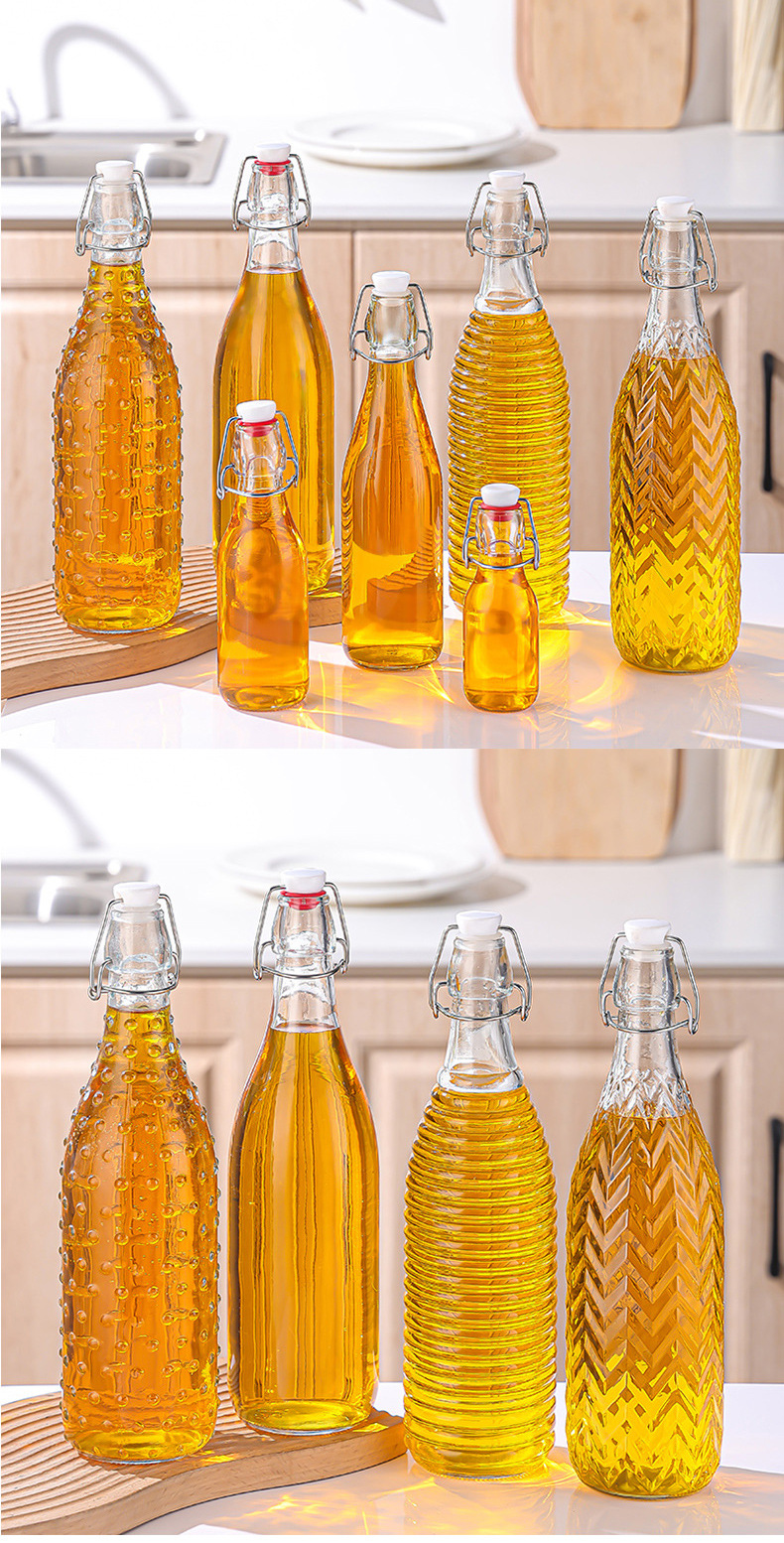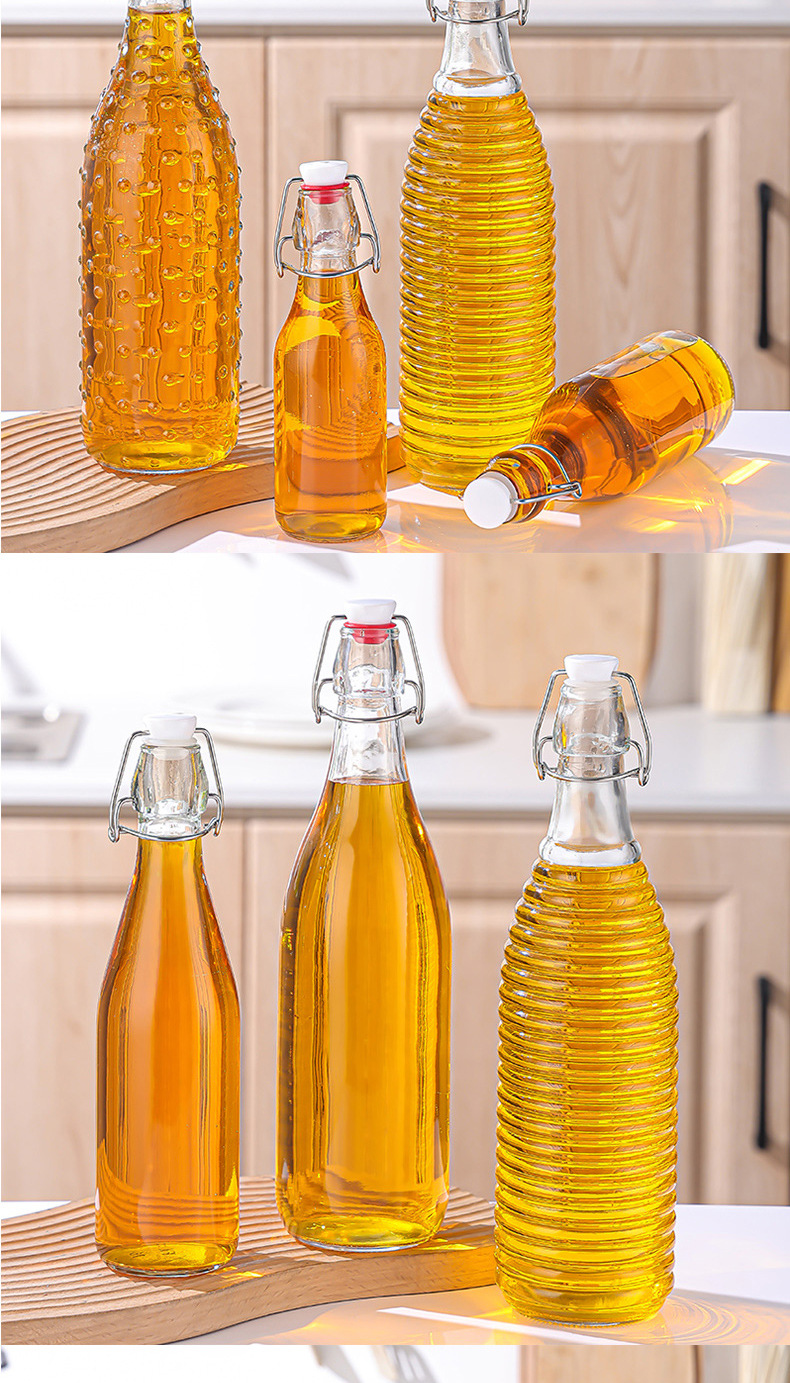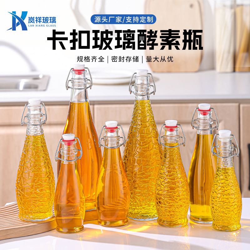クリップ付き飲料瓶透明ガラス酵素瓶密封牛乳ジュース瓶家庭用精油瓶空瓶卸売り