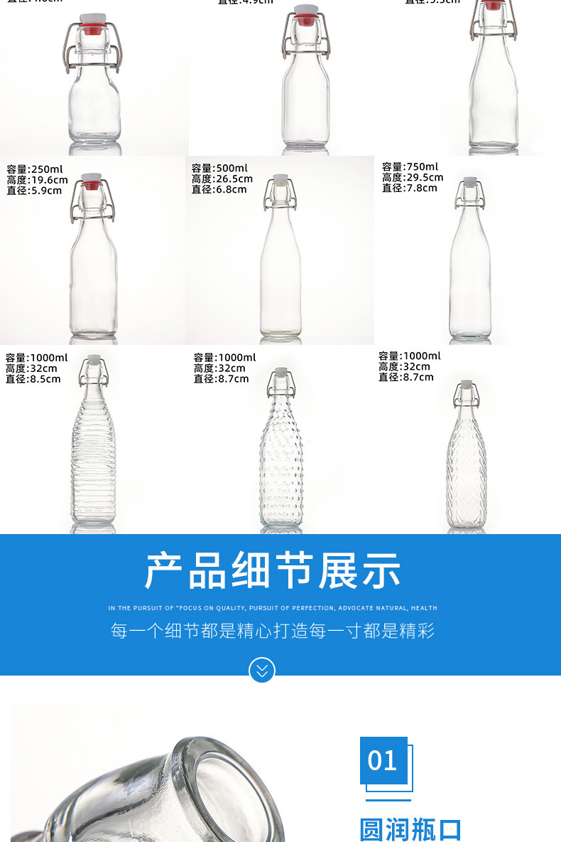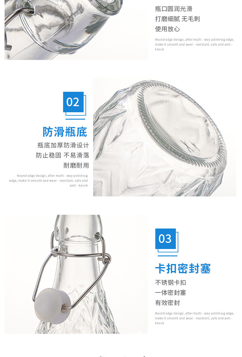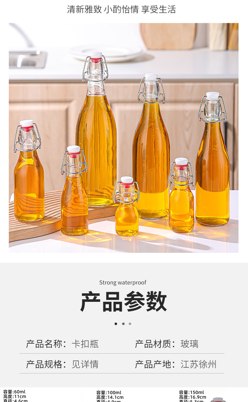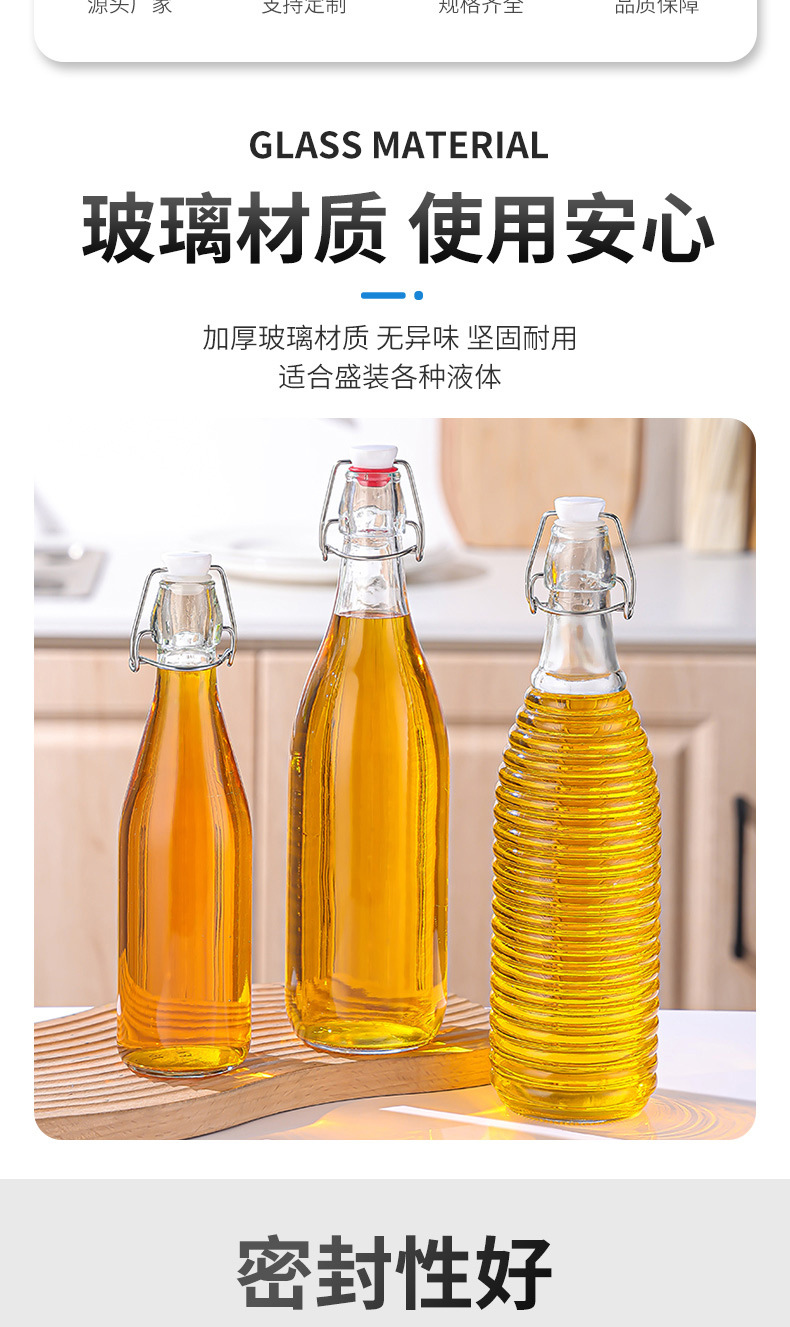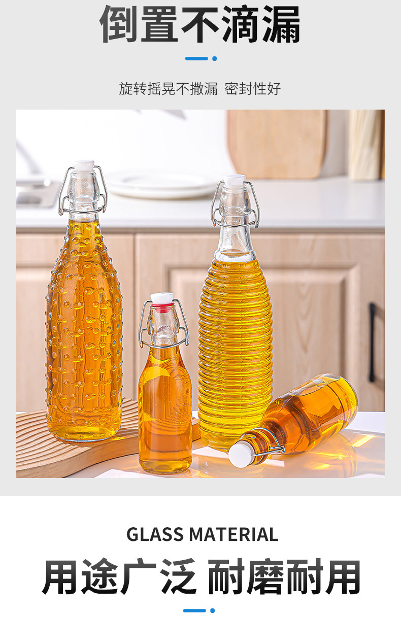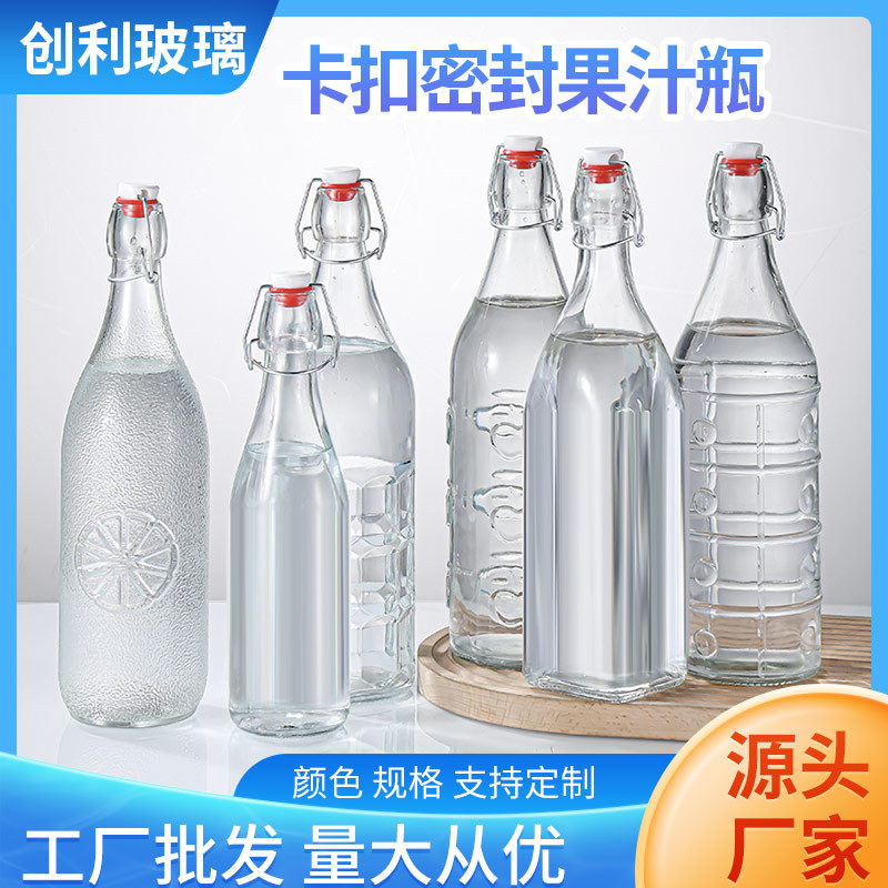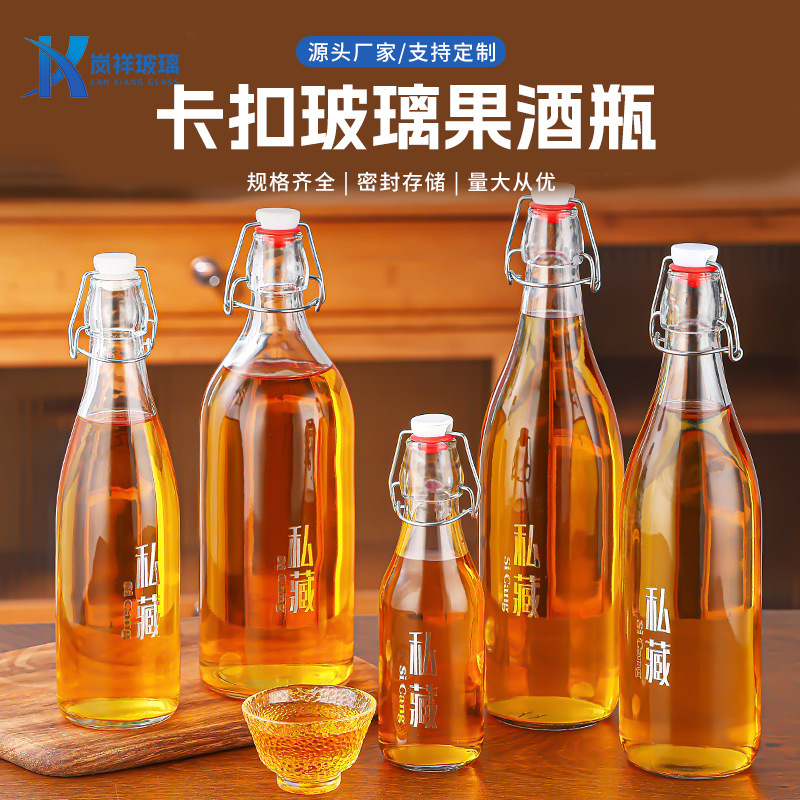 新款透明卡扣玻璃酒瓶密封酵素瓶自酿果酒白酒分装瓶玻璃白酒瓶