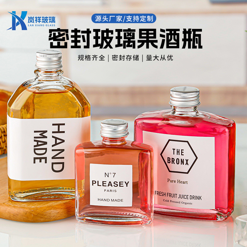 透明スナップボトル、空ボトル、密封自家製ジュース、酒飲料酵素ボトル、ガラスワインボトル、フラットスナップボトル