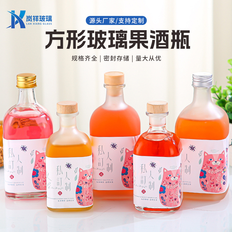 工場直販角型ガラス果実酒ボトル飲料透明空ボトルワインコルクガラスアルミ蓋各種仕様