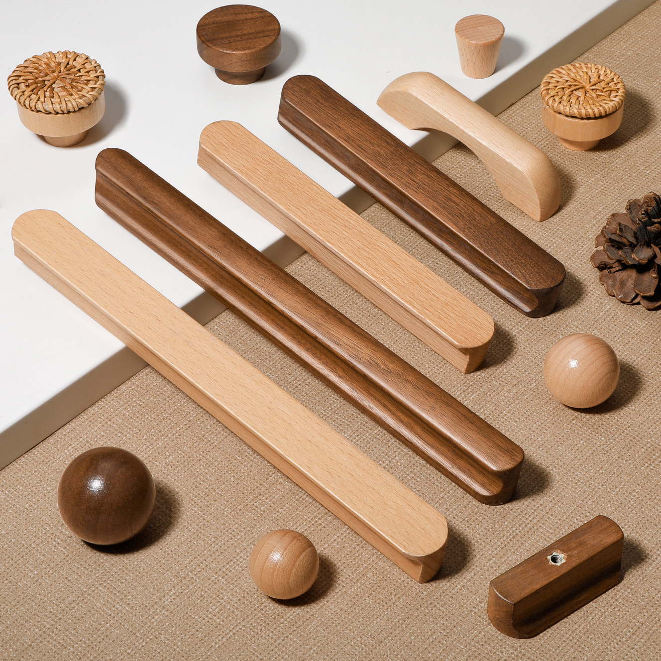 北米産ブラックウォールナット材を使用した室内用無垢材ブナ材製ワードローブハンドル、和風シンプルなドアハンドルをメーカー卸売価格で提供