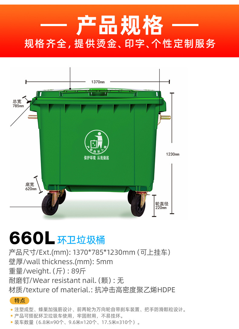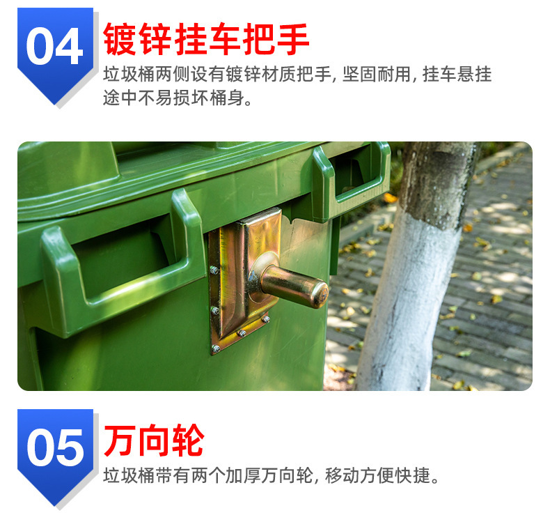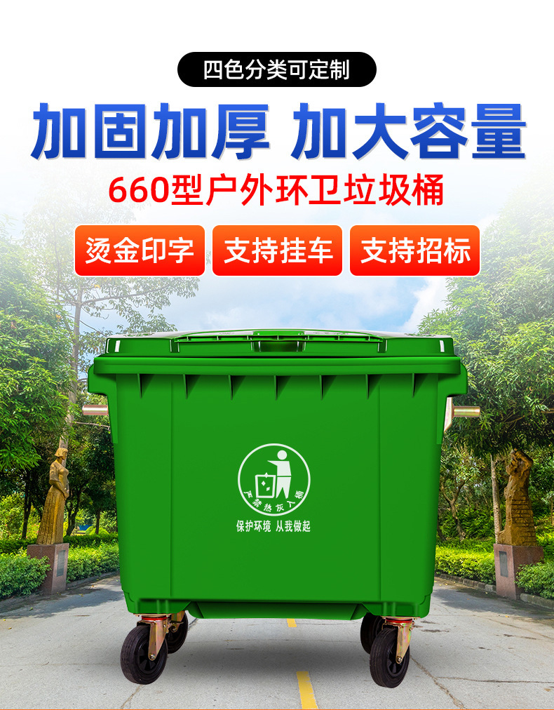 660リットル環衛ゴミ箱660Lプラスチックゴミ箱大型屋外分類ゴミ箱トレーラー市政入札