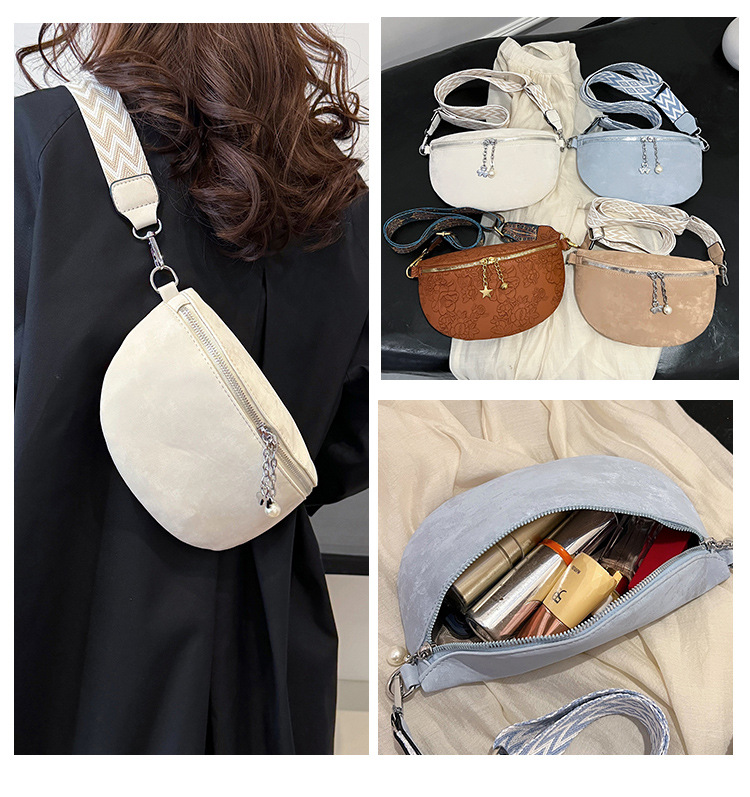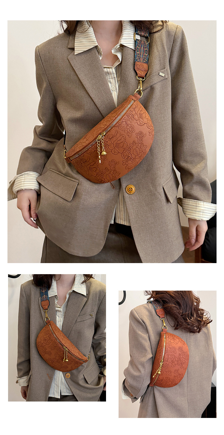 韓国スタイルの女性のバッグ新しいローズエンボス加工ファッションクロスボディウエストバッグエスニックスタイルワイドショルダーストラップ多用途レディースチェストバッグ