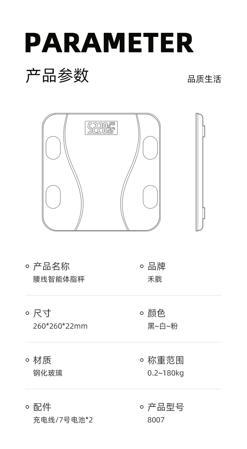 1、体脂数据是通过体重秤的传感器称重 +APP 大数据智能算法分析得出,并非体脂秤直接测量,秤面图案仅为装饰用。