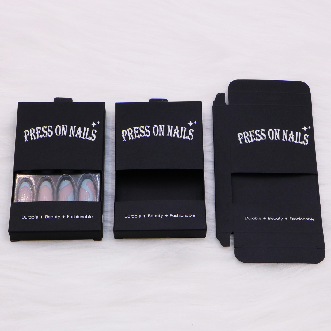 卸売スポットウェアラブルネイル包装ボックス透明窓カートンレーザー紙印刷折りたたみボックスブリスターインナートレイ