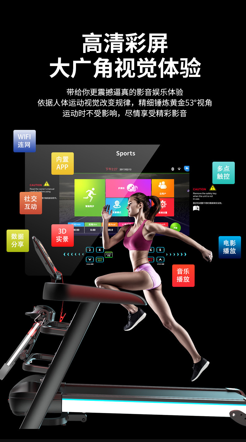 家庭用電動トレッドミル卸売クロスボーダー小型フィットネス機器屋内カラースクリーン多機能 wifi トレッドミル