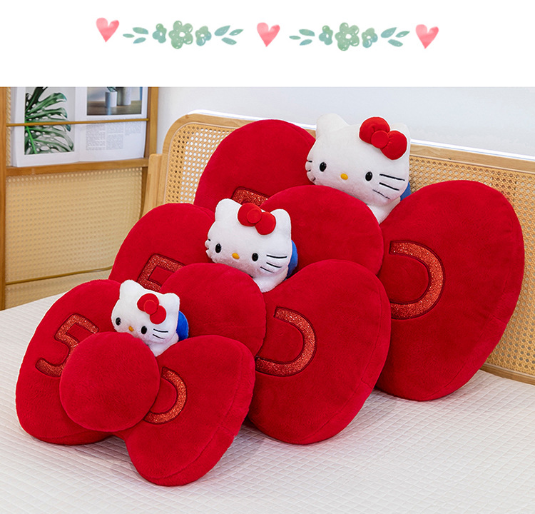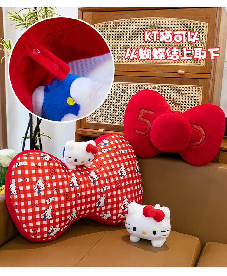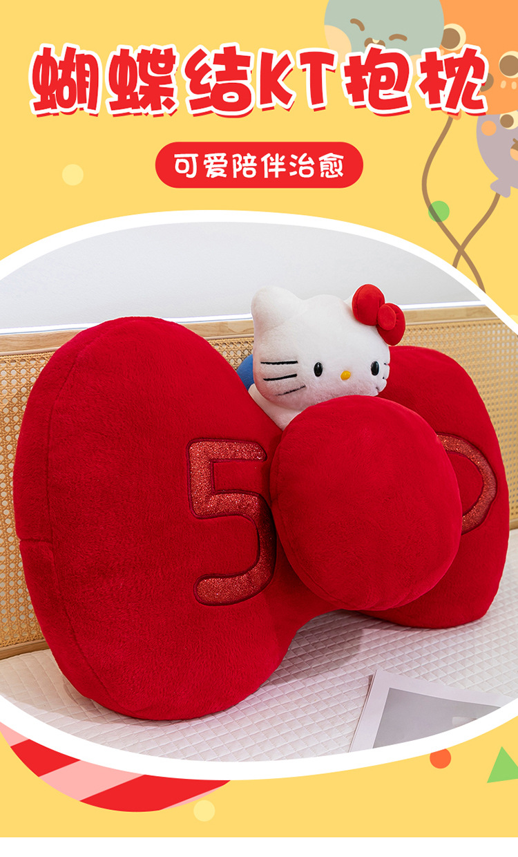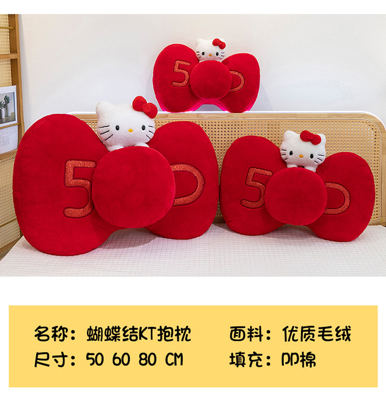新款KT猫蝴蝶结抱枕沙发靠垫520情人节礼物可爱猫咪毛绒玩偶批发
