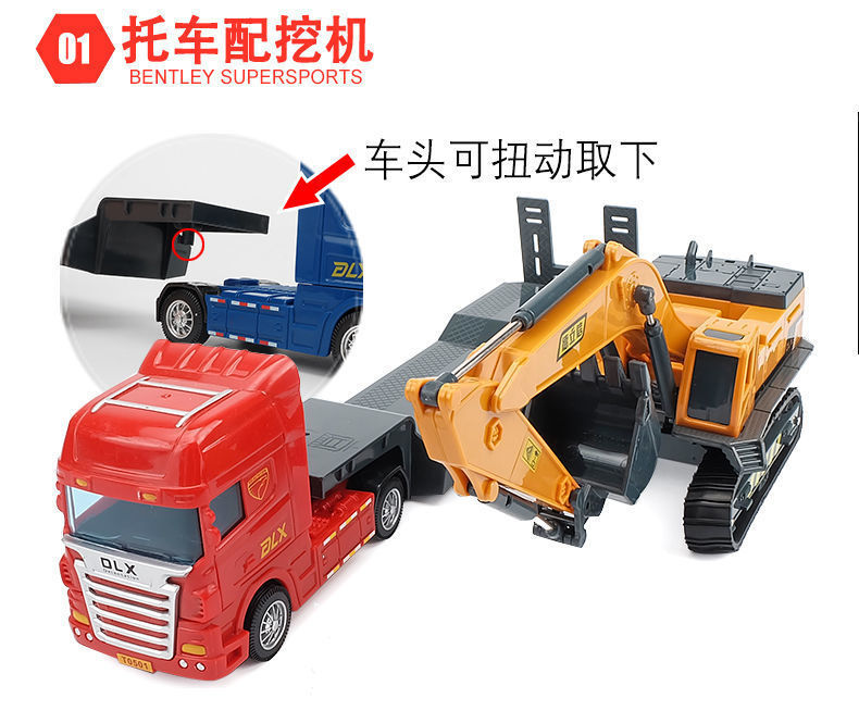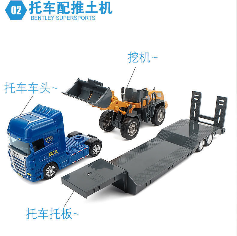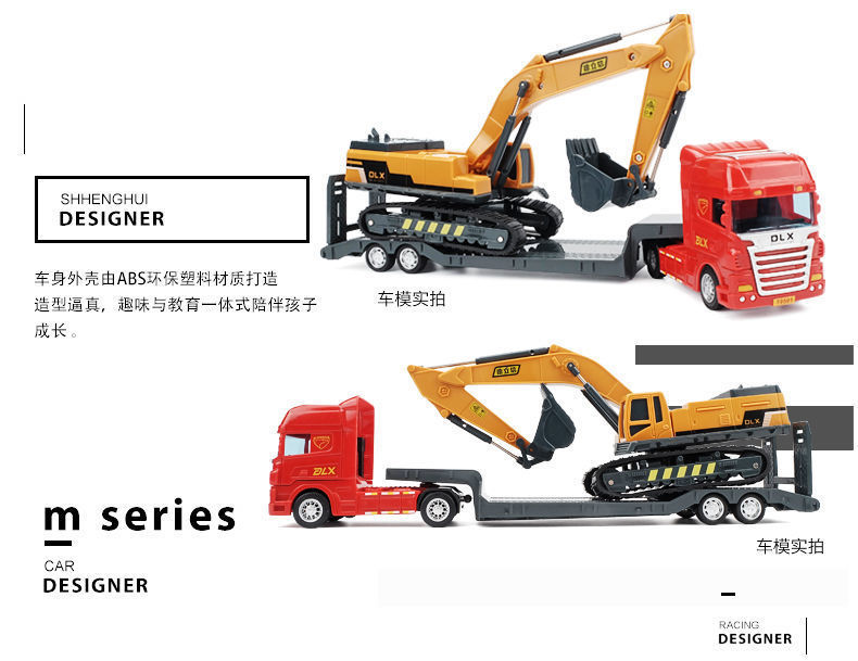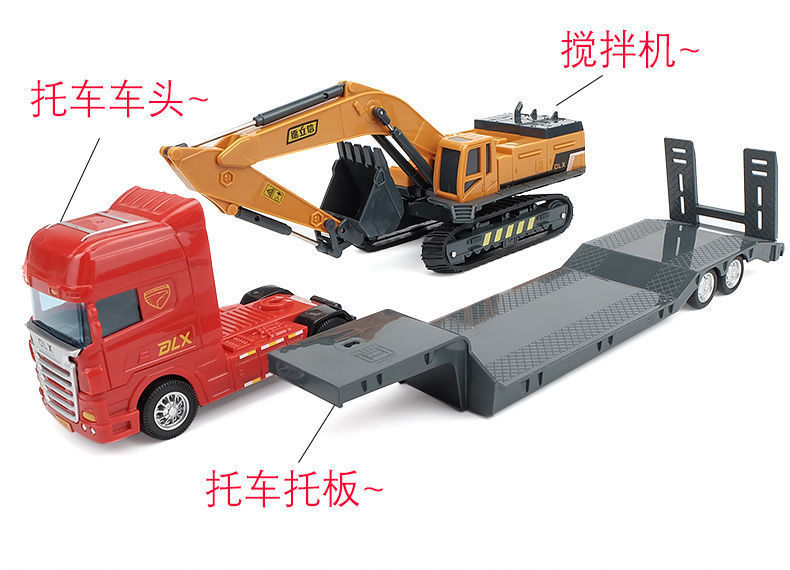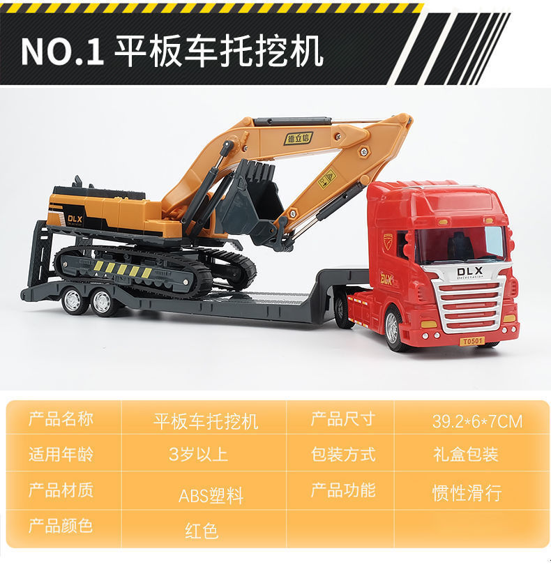 輸送トレーラー玩具児童慣性工事車児童シミュレーション平板トレーラー掘削機ショベルモデル