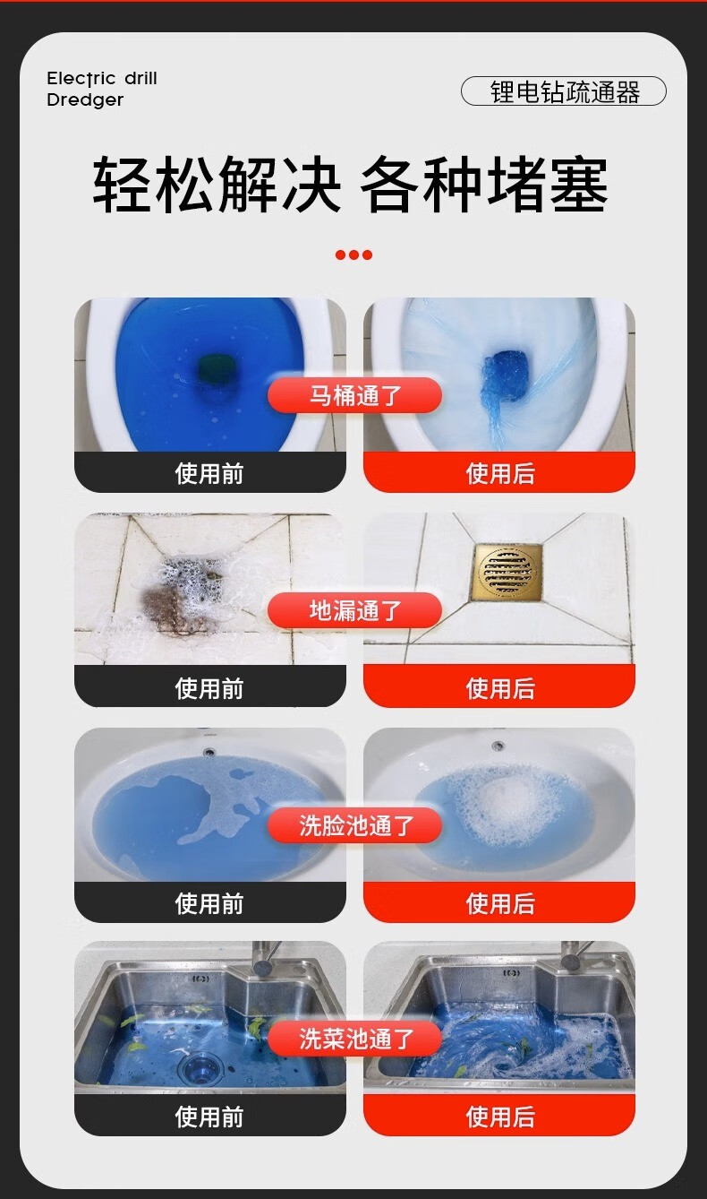 厨房下水道疎通神器トイレ配管万能一砲通専用工具電動トイレ疎通機械
