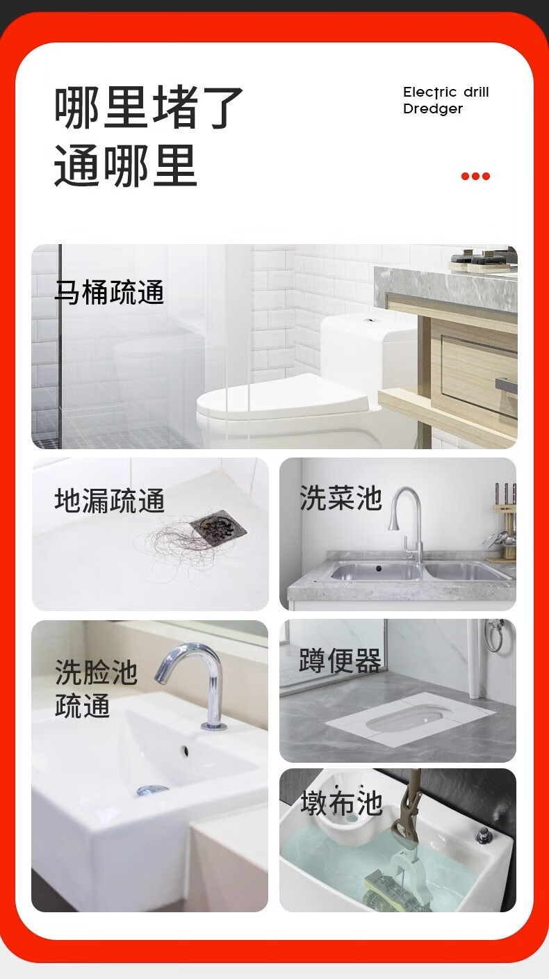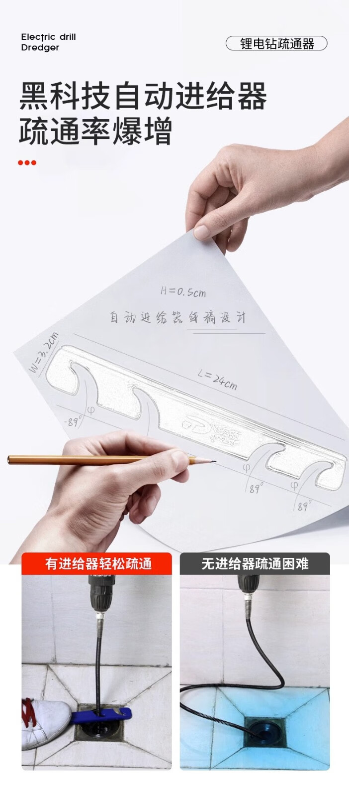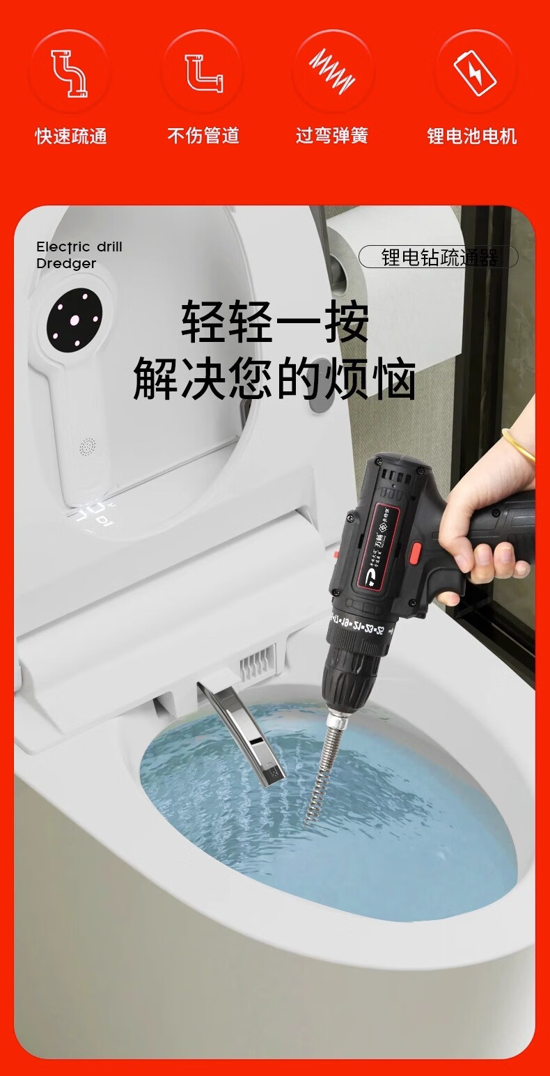 万能下水道疏通神器电动管道家用电钻厕所马桶厨房堵塞弹簧地