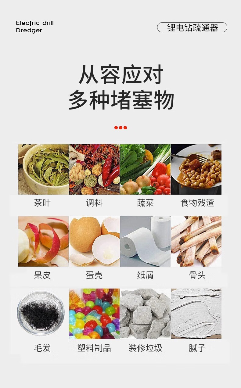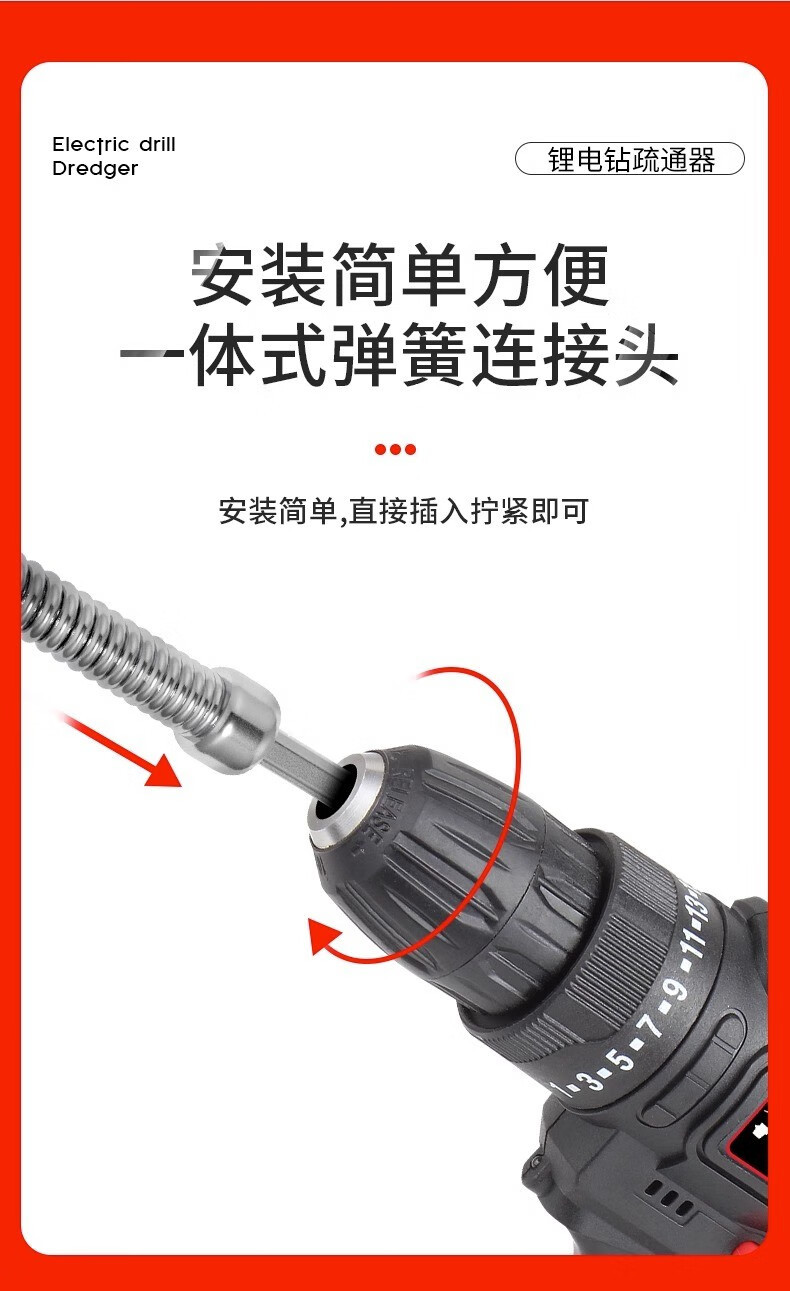 プラグフリーのリチウム電気ドリル、キッチン下水道詰まり解消ツール、トイレパイプ詰まり専用電動詰まり解消ツール