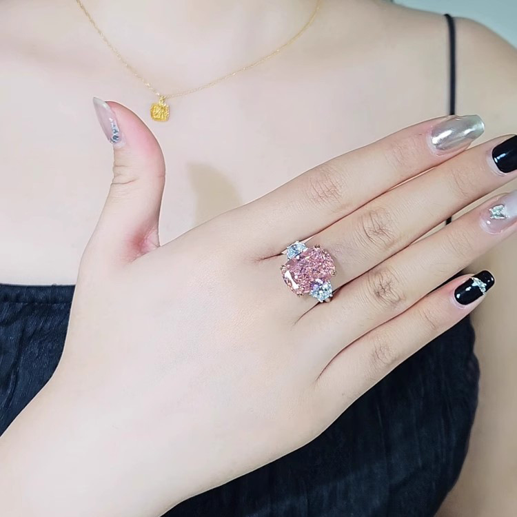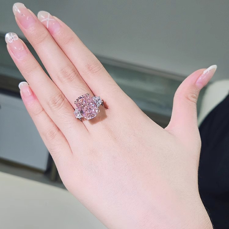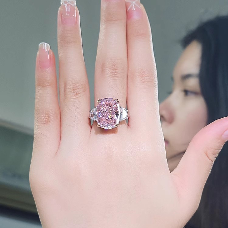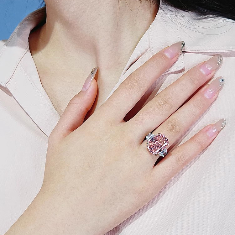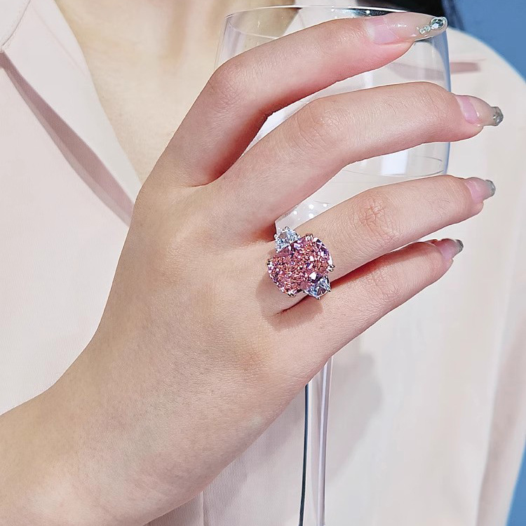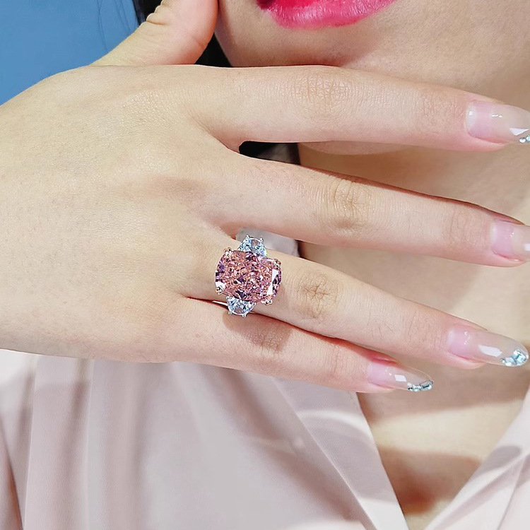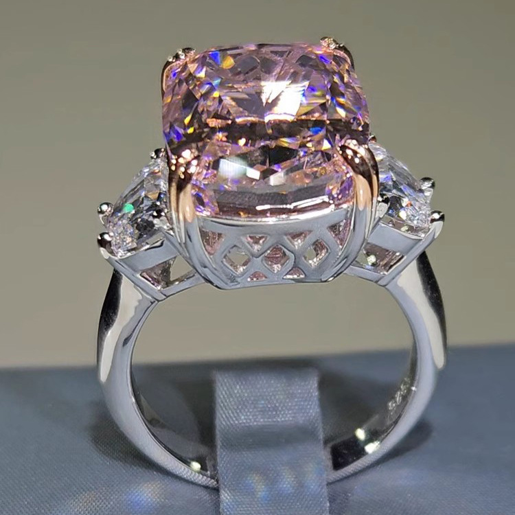 ファッションの軽い豪華な桜の花粉の枕の形の方のドリルの指輪の輸入の高炭素のドリルの超きらきらと輝く粉のジルコニウムの婚約の指輪の指輪