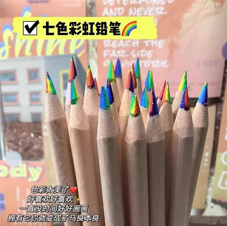 七彩工具儿童彩虹铅笔网红同款渐变色彩开学填色彩芯画册手绘手账