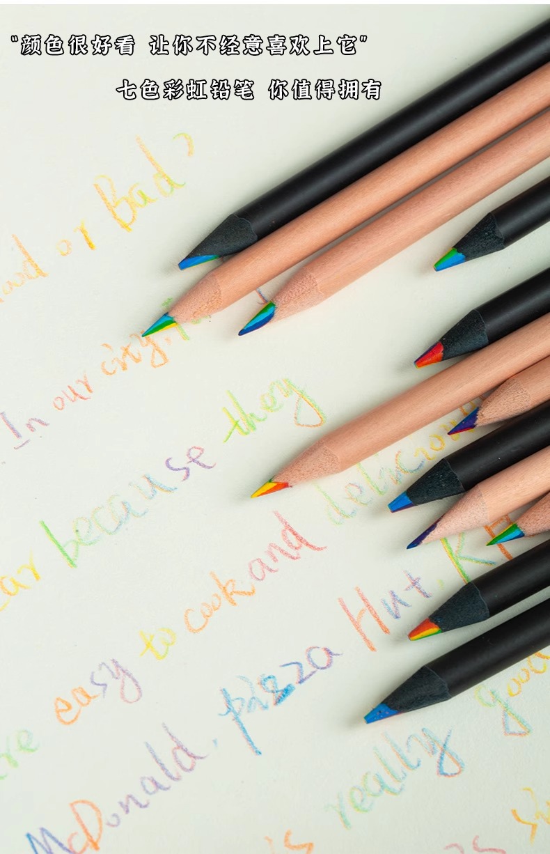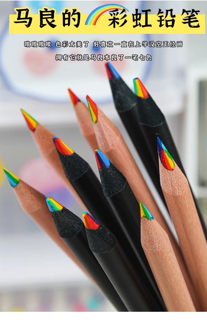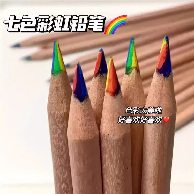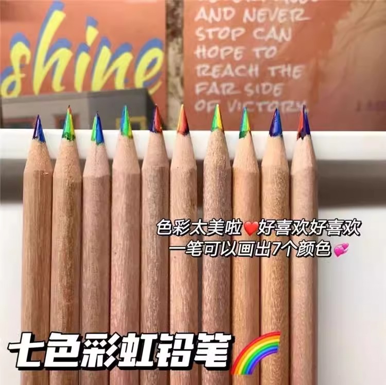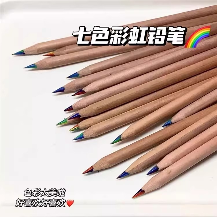 クロスボーダー原木7色芯レインボーペン多色芯グラデーションカラー鉛筆七彩創意混色魔幻彩鉛