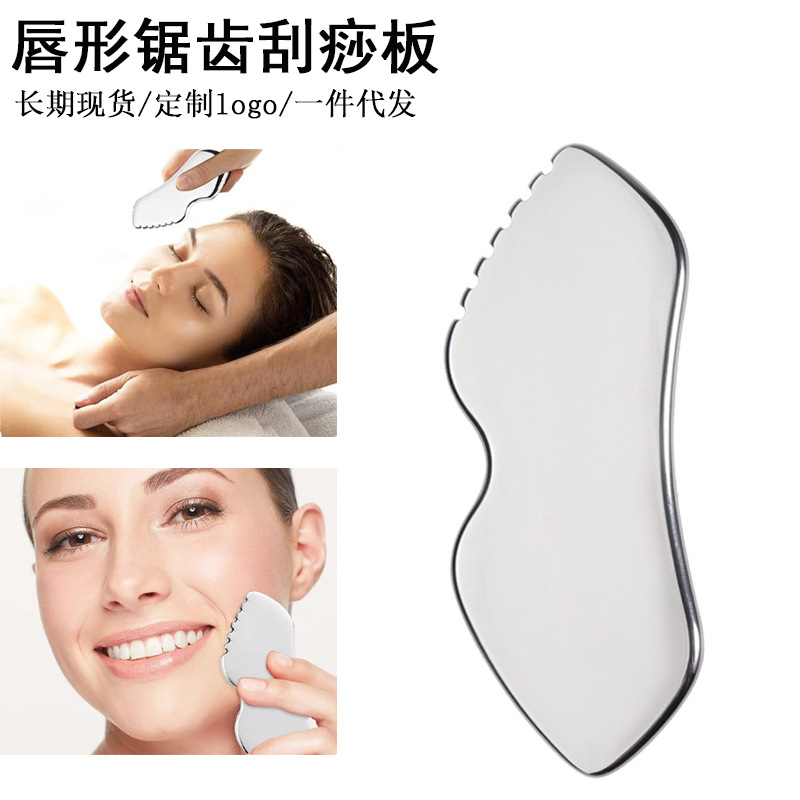 不锈钢脸部刮痧板齿轮唇形刮痧板面部美容按摩提拉刮板镜面筋膜刀
