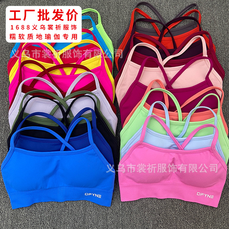 DFYNE 同じスタイルのクロスバックブラ フィットネス ランニング ベルト 胸パッド シームレス ヨガ スポーツ ブラ 女性用 インパクト