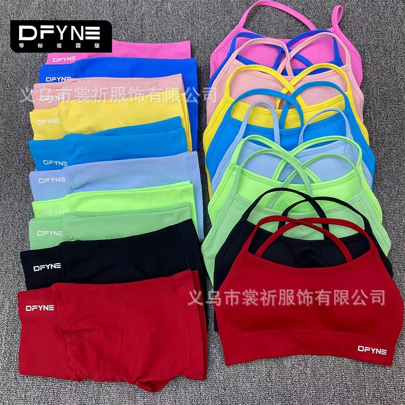 DFYNE欧美热卖交叉文胸短裤套装舒适运动健身瑜伽弹力带胸垫女