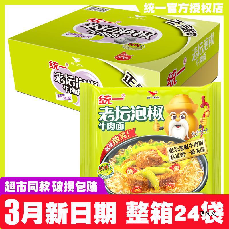 統一インスタントラーメンピーマン牛肉麺104g24袋入りカップラーメン寮インスタント夜食空腹箱買いだめ品
