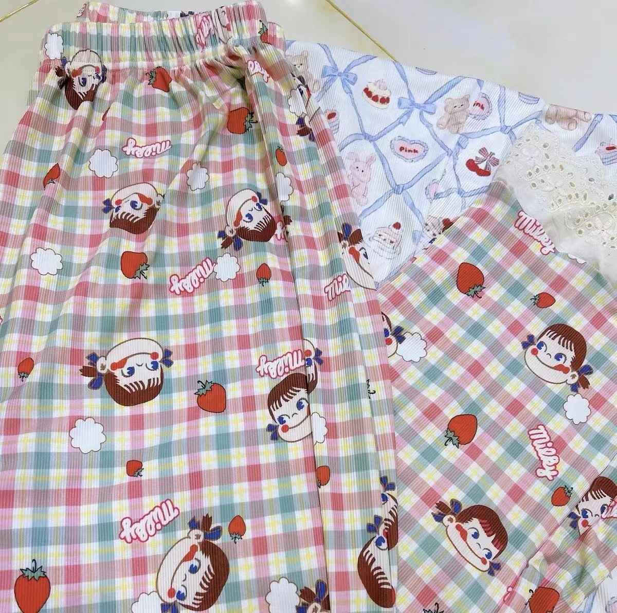 散歩の曲がりのズボンの新型のレースの韓国版の氷の糸のねじの漫画の睡眠のズボンの女性のゆったりしている春秋夏の家のレジャーのズボンはできます。