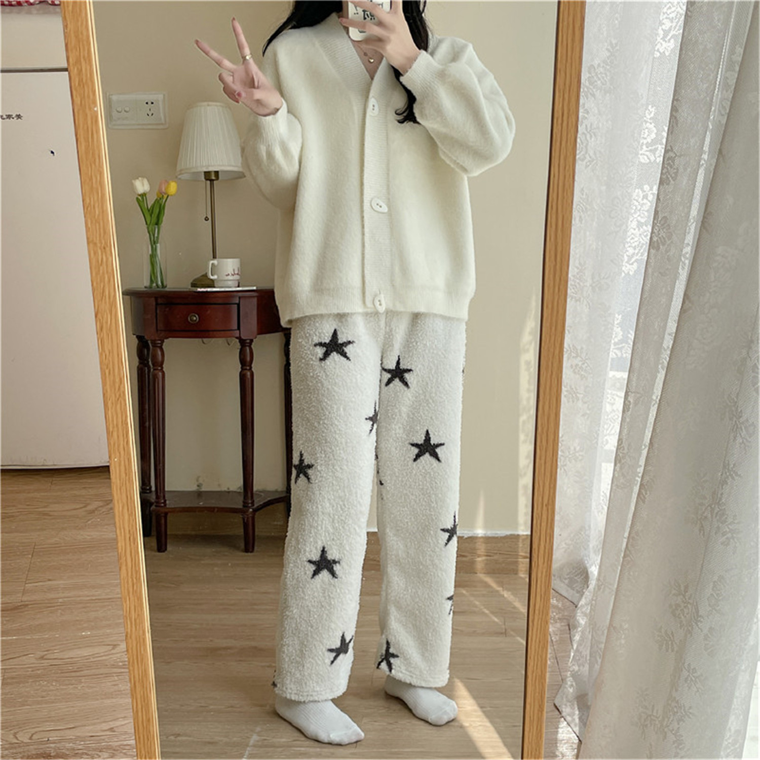 星のプリントの長い毛の睡眠のズボンの女性は秋冬の新型のレジャーの部屋のズボンの冬の保温のズボンを厚くします。