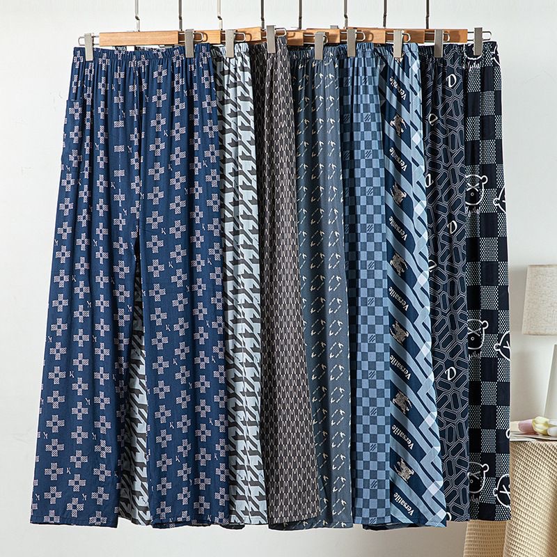 新商品の男性用パジャマの薄いタイプの家庭用シンプルな長ズボンのゆったりとしたエアコンの春と秋の夏のカジュアルなストレートパンツは外に着ることができます。