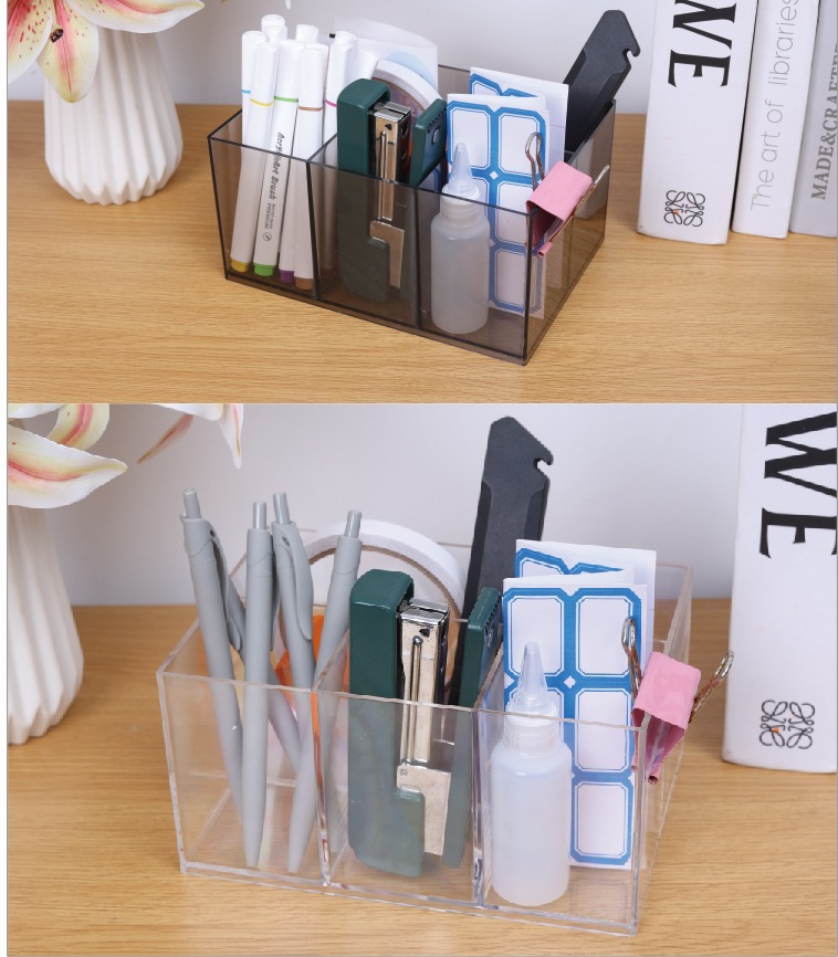 透明アクリル三格筆筒デスクトップ収納ケース多機能オフィス軽贅沢高級感デスク整理