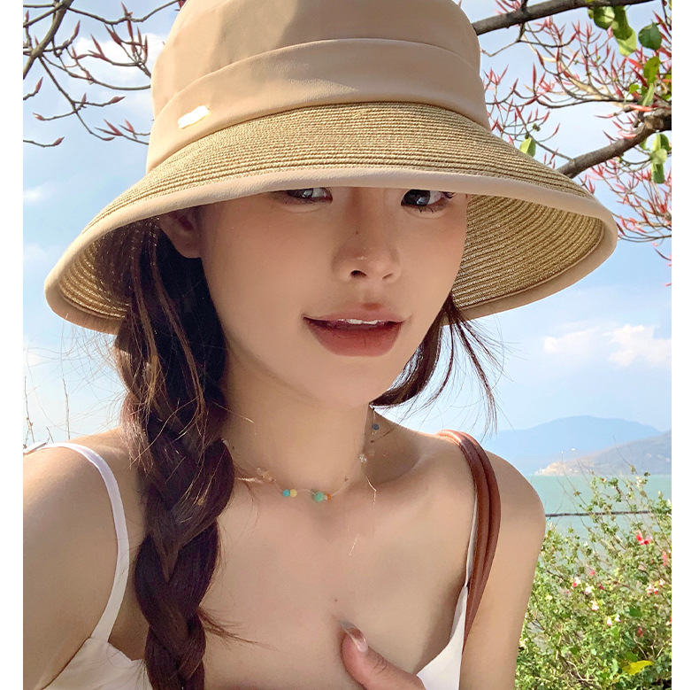 2025新型の空頂の日よけの帽子の女性の日よけの大きなつばの漁師の帽子の夏の屋外の帽子は自転車で太陽の帽子をつなぎ合わせます。