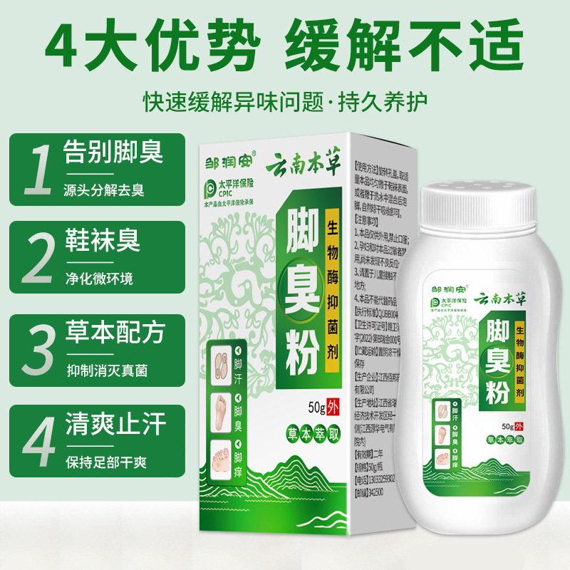 鄒潤安雲南本草の足の臭い粉の臭い足の汗の足のかゆみは足の粉の靴の靴下を浸して防臭の異臭の足の看護の粉を取り除きます。