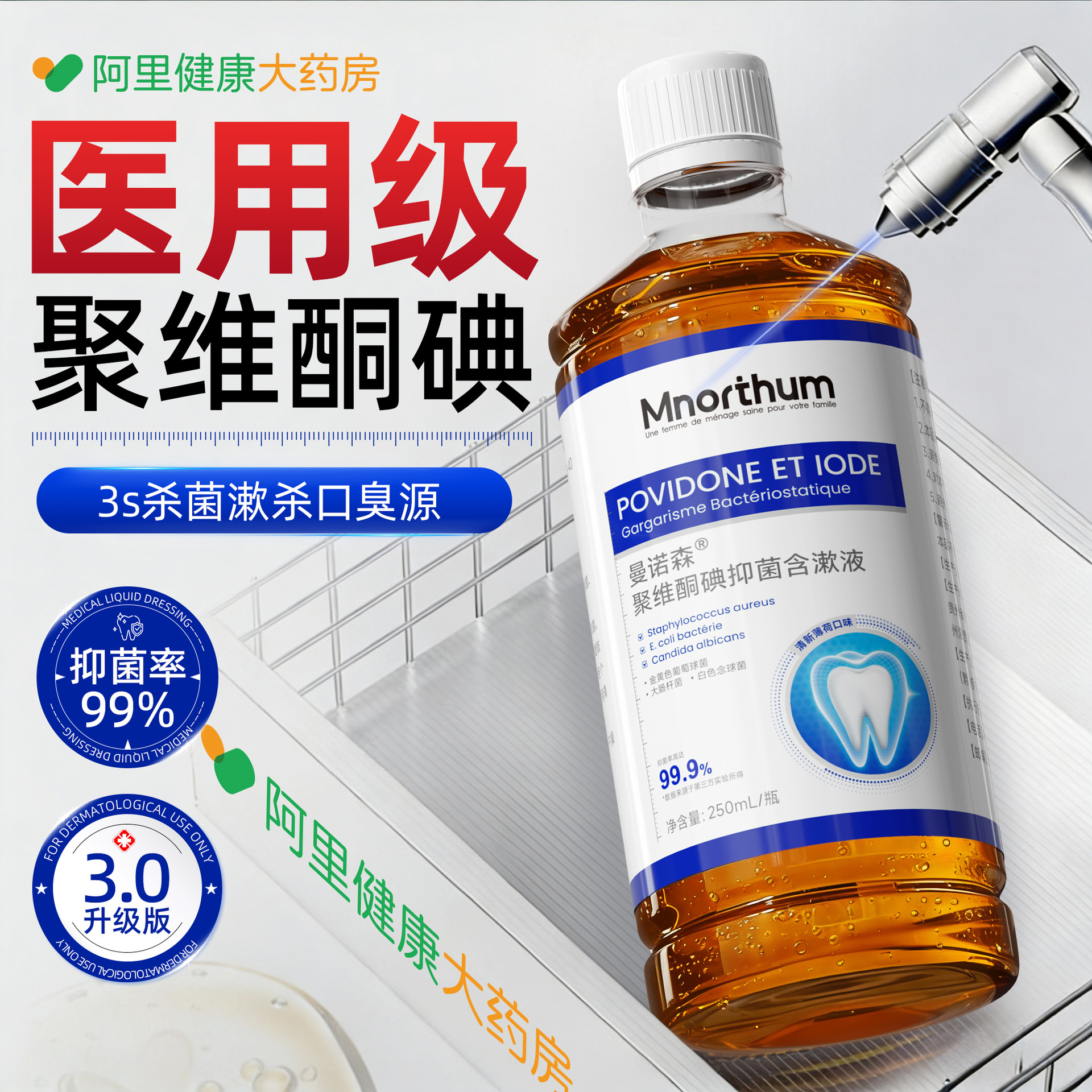碘络酮漱口水杀菌除口臭清新口气簌口水聚维酮碘漱口水批发定制