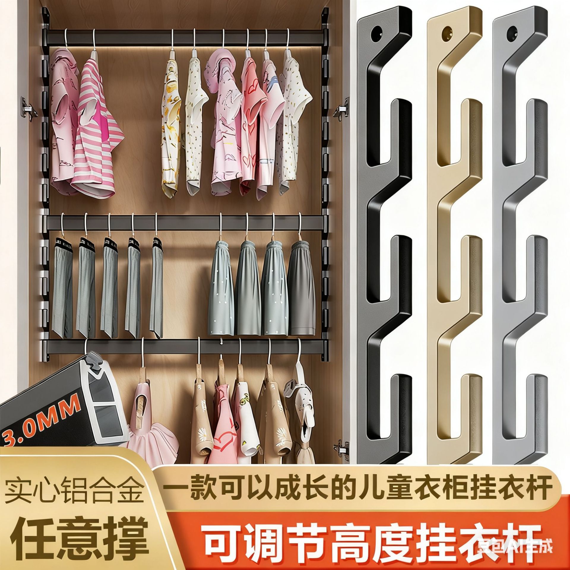 加厚铝合金任意撑成长型儿童衣内可调节高度活动挂衣杆升降衣通