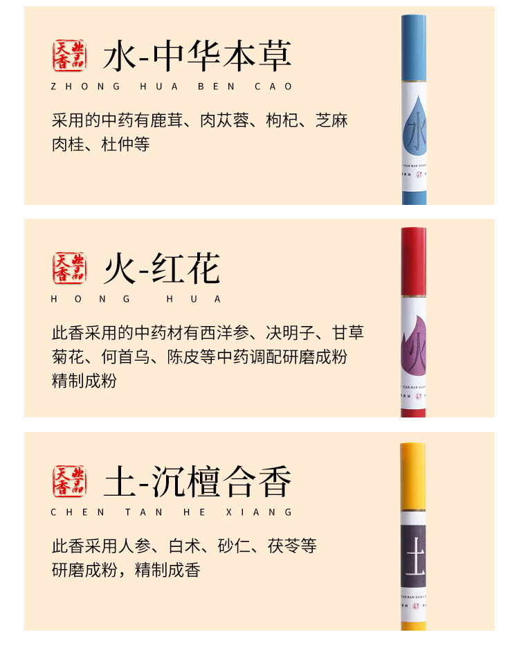 天然五行養生線香持続部屋香薫薫香金木水火土家庭用漢方薬香工場卸売り