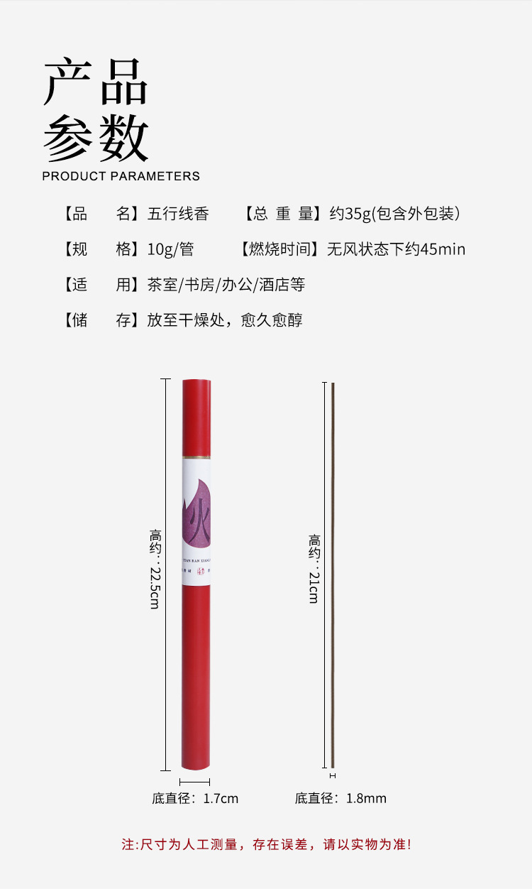 五行健康香金木水火土薬用香線香家庭用アロマセラピー沈香香10gアクリルチューブ