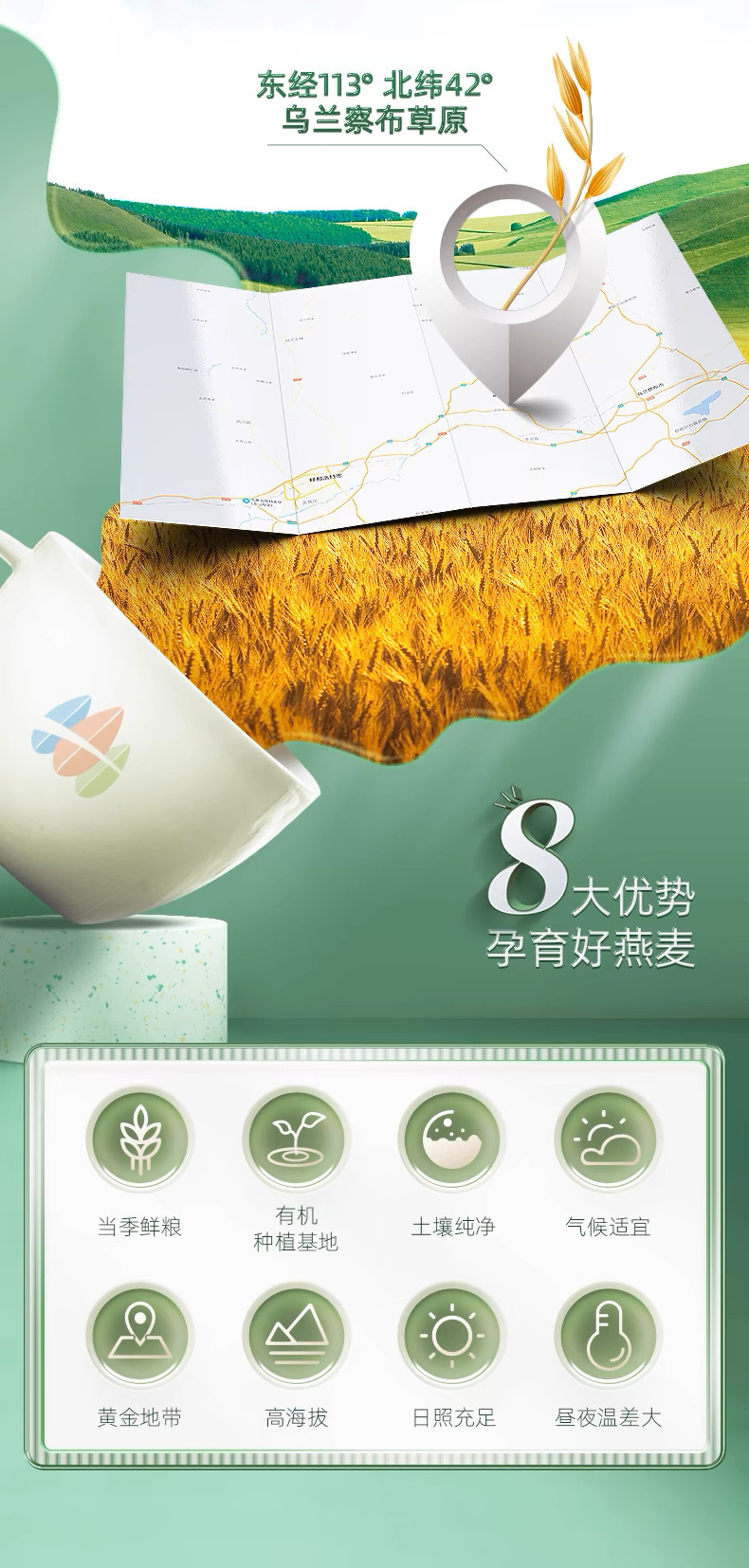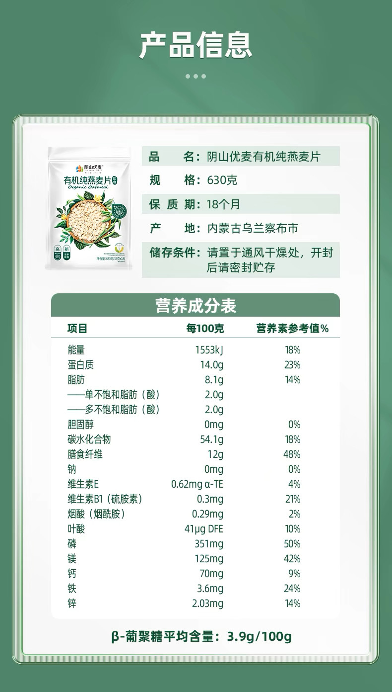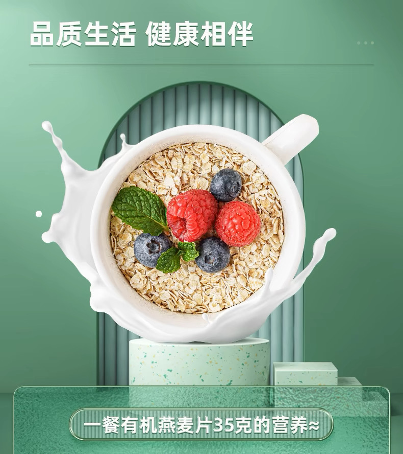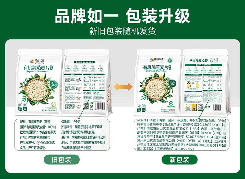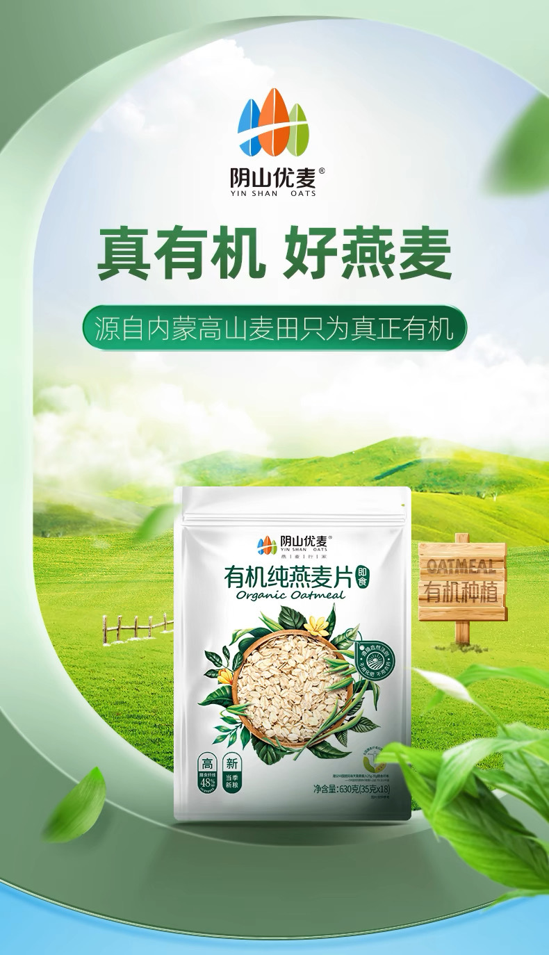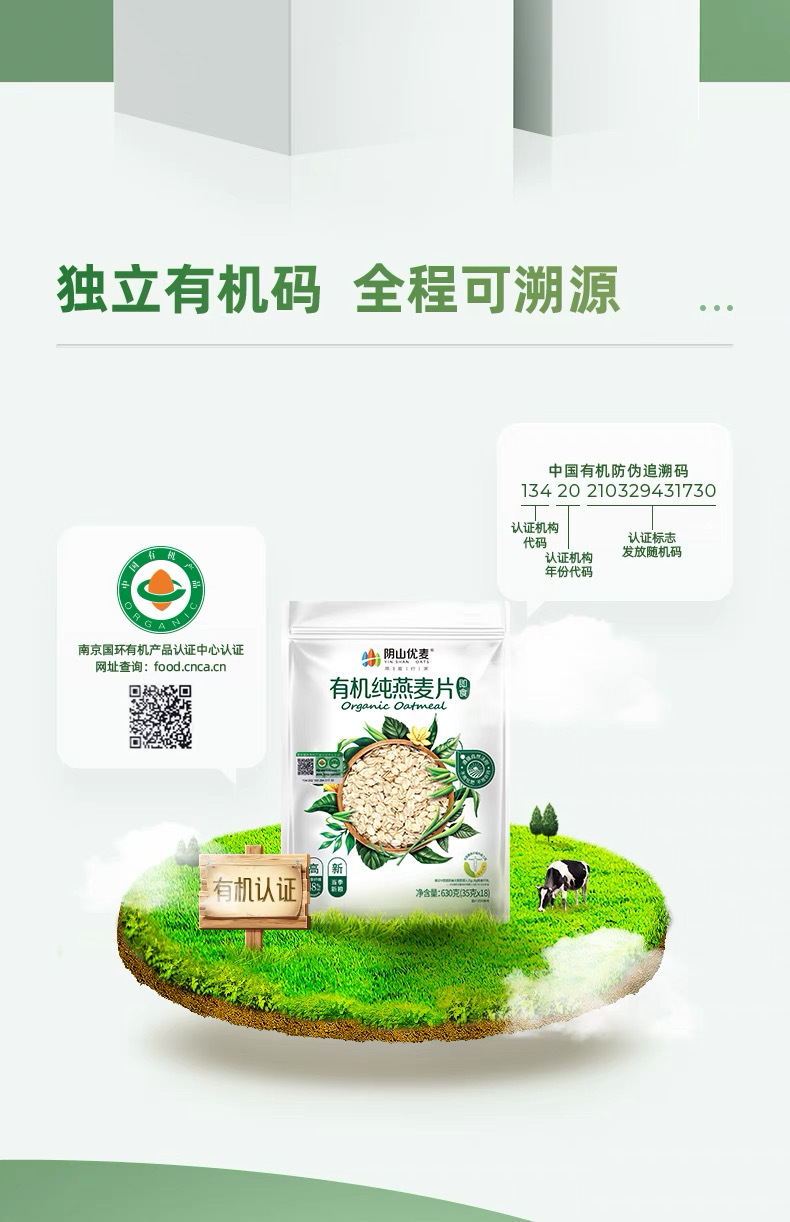 Yinshan Youmai オーガニック ピュア オートミール 袋 630g 砂糖不使用 栄養価の高い朝食 怠け者向けのすぐに食べられるオートミール