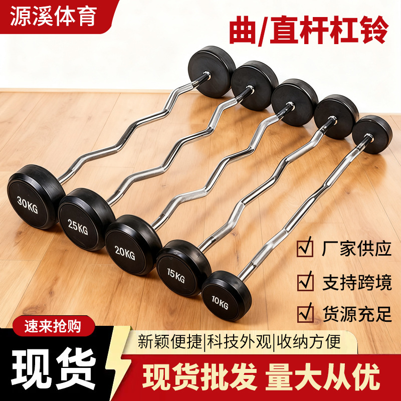 卸売バーベルロッド丸頭ラバーコーティングストレートロッド業務用家庭用フィットネス固定カーブロッドフィットネス機器一体型バーベル