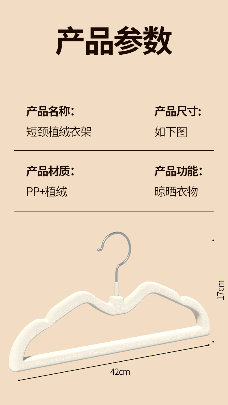 植绒短颈衣架家用挂衣缩脖子矮款省空间无痕防滑防肩角晾衣服衣撑