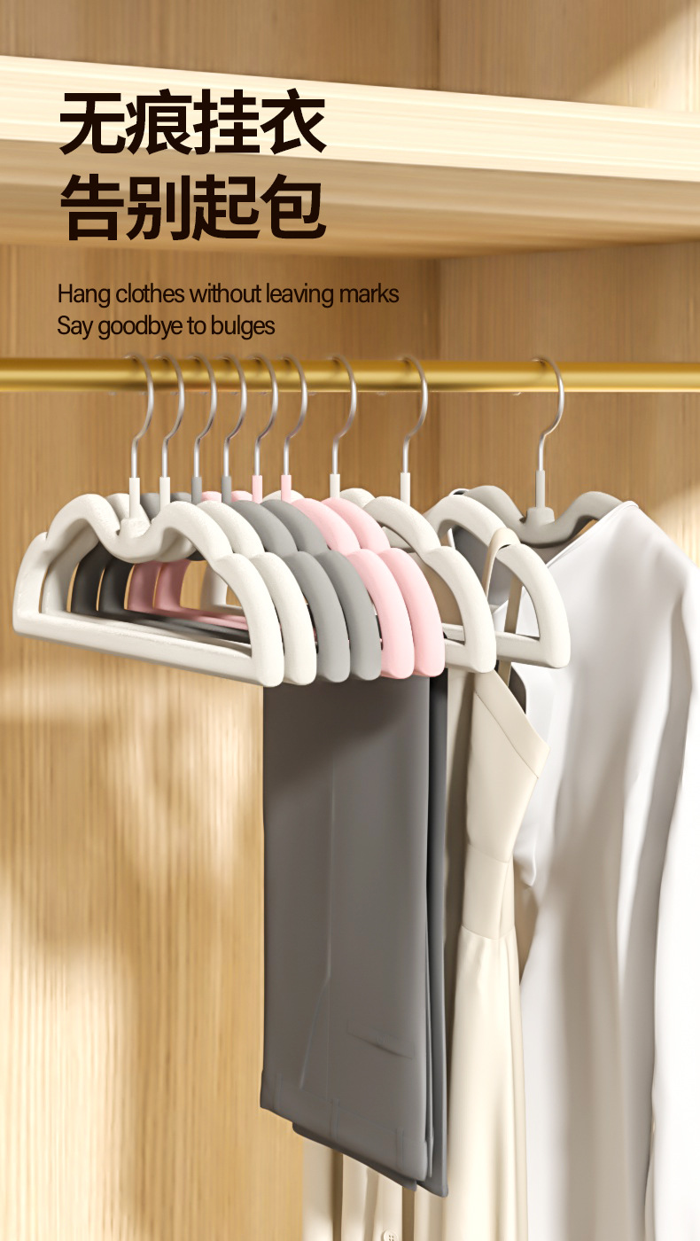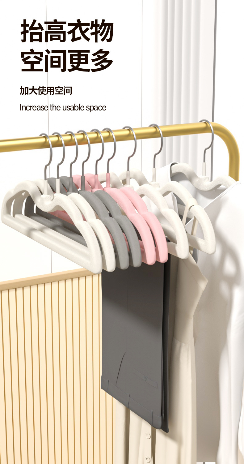 首の短い植毛ハンガー家庭用タンスに服を掛けて滑り止めをします。