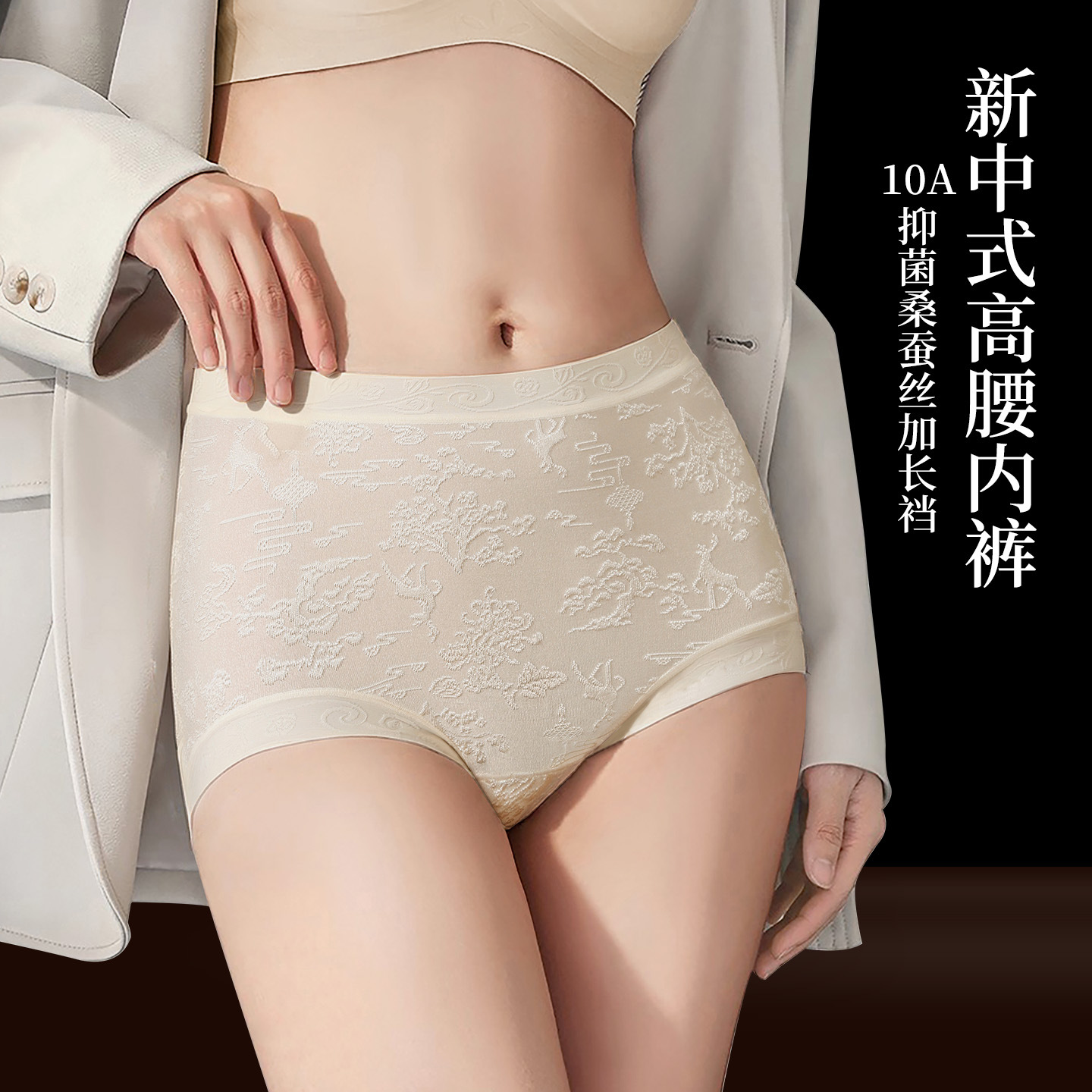 新中式内裤女国风提花高腰轻塑无痕内裤包臀裸感透气亲肤女士内裤