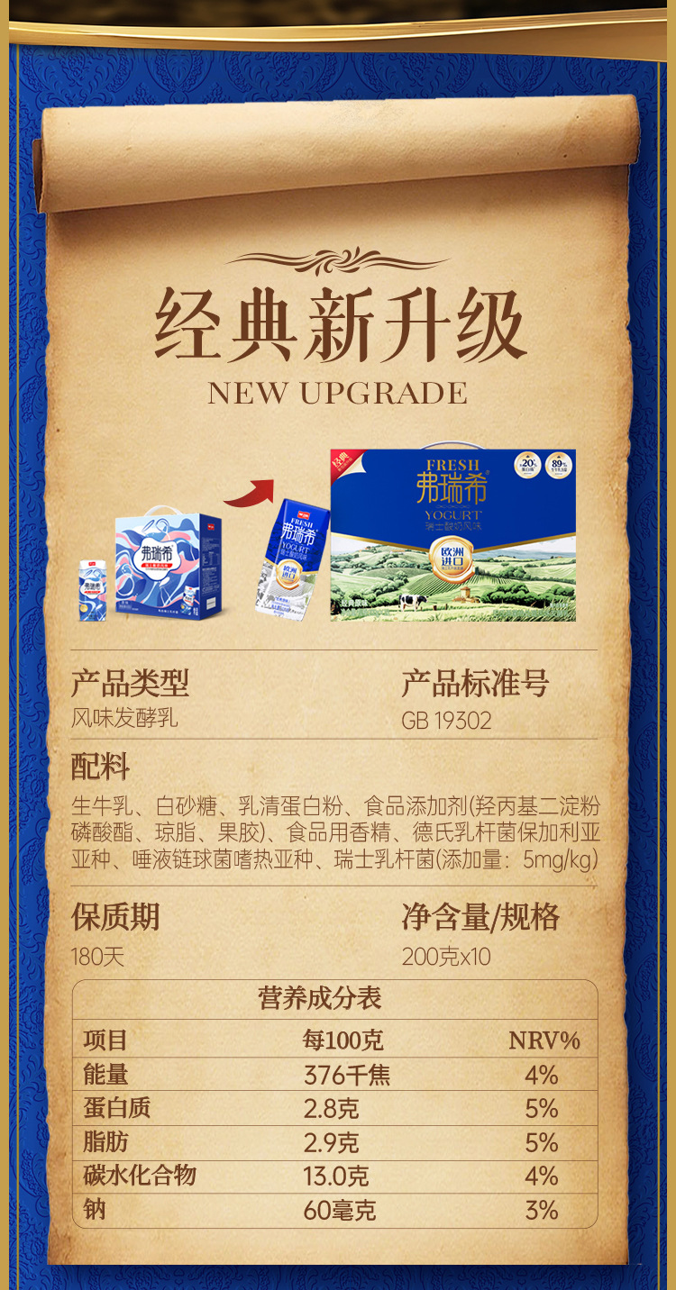 卫岗旗舰店弗瑞希瑞士风味酸奶200g*10盒整箱常温酸奶整箱批特价