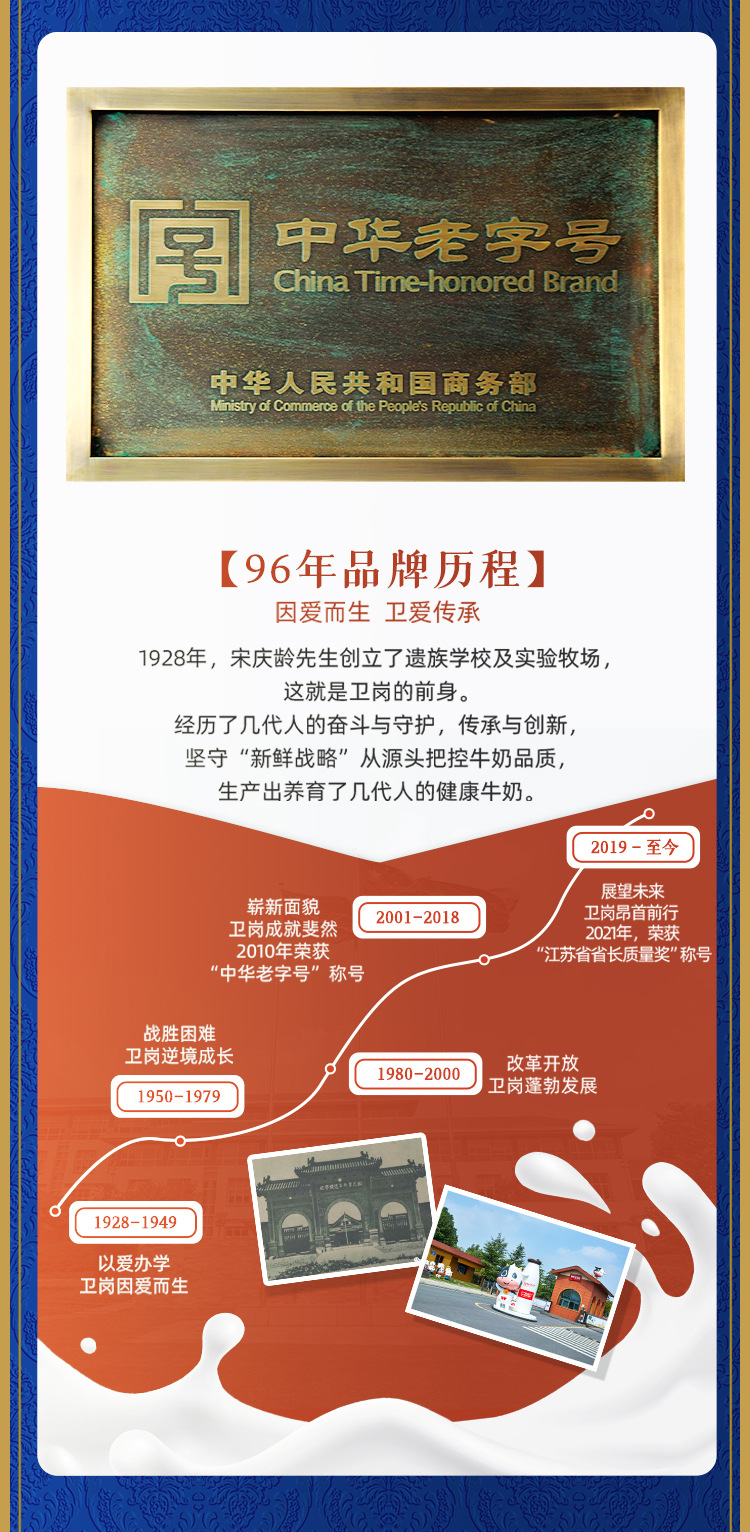 卫岗乳业1928纯牛奶250MLX16盒整箱纯牛奶整批特价