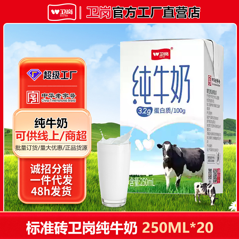 卫岗纯牛奶250ml学生青少年儿童成人营养早餐自然牛奶整箱批特价